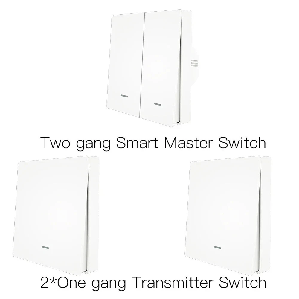WiFi Push Button Smart Switch 1/2/3 Gang Remote Control Light Switch By Smart life/Tuya App Works with Alexa, Google Home By Moes Product Features: 1.Smart App Remote Control: Conveniently control your lights and the backlight indicator with the free mobile "Smart Life"phone App no matter where you are.(Compatible with Android&iOS.)Also,you may easily share it with your family to control your lights together with Smart App. 2.Hands-FreeVoice Control: Compatible with Amazon Alexa and Google Home for easy voice control when your hands are not free,providing your smart life with much more convenience. 3. Simple Push Button Control: With theslightly changed appearance as a traditional switch,it's just okay for us to simply touch control with our hands as a master switch,which fits for the old so much.Besides,a wall panel transmitter can also work with the switch after finishing the pairing to your switch as a vice switch,achieving double manual control to your switch. 4.Non-interfering Control Mode: Differs in features from traditional common switch,this smart switch is able to be controlled by various ways alone with the best value.Each controlling way is able to work independently,providing a much more convenient and comprehensive control mode to your smart home. 5. Timer Setting: Take full control of your Home&Office lights intelligently with the timer feature on your App,which owns a 5+1+1 day programmable schedule to allow you to plan the exact time in advance to turn lights on or off automatically. Auto on/off feature offers you the countdown option of 1 min/5mins/30mins/1hour etc. Attention: WiFi+RF433 Switch(Master Switch): A WiFi+RF433 smart switch that owns all smart functions for intelligently control your lights.So it is a main switch for your connected appliances,as well as a receiver for the wall panel switch because of the RF433 feature. Wall Panel Transmitter(Vice Switch): A wall panel transmitter is a vice switch that has already been paired to the master switch to turn on/off your lights as an simple switch in another easy way,but it doesn't own any wifi smart functions. Packing Listing: MOES Smart Glass Panel Touch Switch(1Pack) 2*Screws Quick installation guide Features: Programmable Schedules Hands-free Voice Control APP Remote Control Touch Control Wall Panel Transmitter Control Consulting our detailed manual,you can easily install it. Q&A: 1.Q:What about the old who just don't know how to use App to control? A:For the old,as well as the little kids,a wall panel transmitter with the same looking as the switch is optional for them to easily control your switch.Simply pair your switch to the wall panel transmitter. 2.Q:Can I control the switch if I am not at home? A:Yes, you can remotely control your switch and conveniently turn it on/off anywhere,anytime. 3.Q:Can I program the schedule myself? A:Yes,our push button switch is programmable.You are able to program your schedule freely. 4.Q:Does this work with Google Home? A:Yes,it does.And it's also compatible with Alexa. 5.Q:May I use a neutral wire? A:Yes,a neutral wire is required for our switch. 6.Q:Do I need to buy a wall panel to match the switch? A:No,there is no need for you to buy as it's a kit that the switch and the wall panel are combined together.