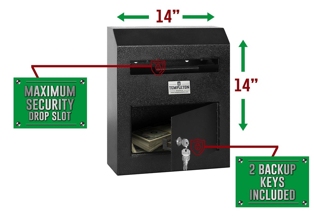 Our wall mounted depository safe is the perfect safe for businesses that need a safe place for after hour deposits. These safes are secure for money drops and have enough storage for paperwork, keys, and other small items. Constructed of rugged steel to withstand long term use. DEPOSITORY DROP SAFE: With our one-way drop slot this small safe is perfect for deposits, small items like keys, important paperwork, and cash KEY LOCK: This safe is perfect for small businesses, retail stores, churches, homes, and schools that just need a simple but strong key lock on their drop box safe PRECISION DURABILITY: Made from laser cut solid steel, this small safe is very secure against theft, and is tamper, fishing and pry proof WALL MOUNT: Comes with hardware to mount it against any wall for safety against theft of the entire safe ADAPTABLE: Great for indoor or sheltered outdoor use