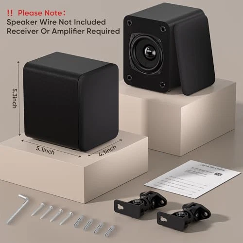 Return Policy Fast Delivery Trusted seller Wall Mount Passive Speakers, Indoor Rear Surround Sound Speakers, Stereo Speakers for Midrange & High-Frequency, Passive Bookshelf Speakers for Home Theater, Receiver or Amplifer Required Product Description [Compact Design with Bold Performance] The passive speakers boast a compact design, measuring just 5.1" in length and 5.3" in height, while delivering an impressive peak power of 22.5W for bold sound performance. With a 6-ohm impedance, the stereo speakers strike the perfect balance for natural sound, making them ideal as rear speakers. The premium surface is durable and stylish, adding a decorative touch to your home theater [Ideal Choice for Rear Sound] The passive bookshelf speakers are equipped with a dome tweeter designed for midrange and high-frequency sources, which delivers a more natural and clear audio experience. Surround speakers exhibit low power while maintaining high sensitivity, delivering rich sound quality in the midrange and high-frequency ranges. Wall-mounted passive speakers are perfect as rear surround speakers in home theater systems, enhancing the immersive sound experience [Adjustable Wall Mount Passive Speakers] The passive speakers come with a wall mounting bracket kit for indoor easy installation. The bracket rotates 120° both vertically and horizontally for an enhanced sound experience. These wall mount speakers not only enhance your audio experience but also serve as an elegant decoration for your living room [Immersive Surround Sound Ambiance] Passive speakers create an immersive experience during movie nights with friends, capturing every whisper and explosion. Designed to elevate your home theater experience, our rear surround sound speakers provide an immersive ambiance [What's in Package] You will receive a pair of passive speakers, 2 anti-vibration cushions, wall-mounting kits (2 wall-mount brackets, screws, a screwdriver,etc.) (Speaker wire not included). If you have any questions, we are always to help you. We offer 3 years of manufacturer support and 24/7 service Shipping Returns Payment Shipping Shipping is FREE to all addresses other than APO/PO boxes in the lower 48 states. All our stock ships from US-based warehouses. Shipped via USPS or UPS (depending on location and package weight) Unless stated otherwise, all orders will ship within 24-72 hours of your payment being processed. Check our feedback to see the great reviews of FAST shipping we offer. Returns Seller does not accept returns Payment We currently accept payment via eBay managed payments only. Once payment is cleared, we will dispatch your shipment within 1-3 business days. Please refer to the "Shipping" tab for more information regarding shipping speed to your destination.