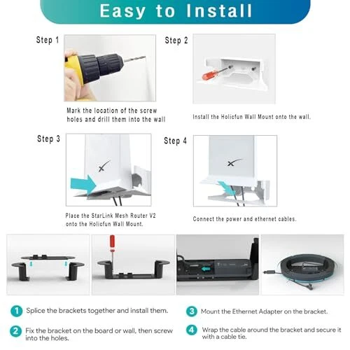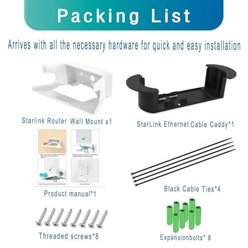 Return Policy Fast Delivery Trusted seller Wall Mount for Starlink Mesh WiFi Router V2 Mesh Router Bundle with Starlink Ethernet ABS Cable Caddy and Starlink Ethernet Adapter Brackets Holder Product Description Flexible: GTOMNI StarLink Internet Kit Satellite mount can provide extra stability to your wireless starlink mesh router and power supply without blocking any signal. With inductive charging line, the starlink cable can be neatly wrapped inside the bracket. All-in-One Organization:These Starlink Accessories kits help you manage starlink mesh routers and starlink cable, StarLink Ethernet Adapter, making them neat and organized.This Starlink accessories mount is easy to install and you can either screw it into the wall.The Starlink Wall Holder fits starlink router/ star links Ethernet Adapter nice and snug and it doesn’t move once in place. Convenient and Space-Saving: Easily mount the Starlink Cable mounting Caddy on the wall, RV, SUV, yacht, or any suitable surface. Say goodbye to tangled cables on the floor as you keep your setup tidy and efficient. The starlink cable 150 can be neatly wrapped and adjusted as needed for optimal length. COMPATIBLE DEVICES: The ABS wall mount holder offers a secure and space-saving solution for mounting the Starlink Mesh Router V2 and your Starlink Ethernet Adapter. Its compact design ensures the adapter stays out of the way, saving valuable space on your wall or desk. WHAT’S IN THE BOX:StarLink Router wall mount*1, StarLink Ethernet Cable caddy*1, Expansionbolts* 8 Threaded screws*8, and Cable Secure Straps. Shipping Returns Payment Shipping Shipping is FREE to all addresses other than APO/PO boxes in the lower 48 states. All our stock ships from US-based warehouses. Shipped via USPS or UPS (depending on location and package weight) Unless stated otherwise, all orders will ship within 24-72 hours of your payment being processed. Check our feedback to see the great reviews of FAST shipping we offer. Returns Seller does not accept returns Payment We currently accept payment via eBay managed payments only. Once payment is cleared, we will dispatch your shipment within 1-3 business days. Please refer to the "Shipping" tab for more information regarding shipping speed to your destination.