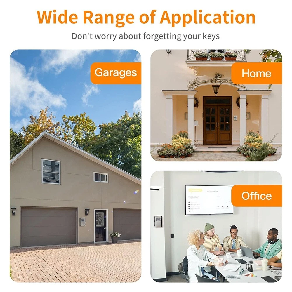 Metal Password Key Box Wall Mounted 4 Digits Password Storage Box Theft 3654 Material - Crafted from high strength zinc alloy body and hardened-steel shackles, the key lock box guarantees secure for your keys. The shutter the 4 combination dials from rain snow and ice. Also, the reinforced metal molded body helps to withstand hammering and sawing. Ultra Security - This key storage box with 4 dials offers up to 10000 combination possibilities so that it is hard to crack. And it gives you the option of resetting the combination whenever you wish. Please note that after the password is reset, it is best to take a photo record or record it with a note. Large Storage Capacity - The key lock box outside size around: 12x4x8.7cm. With a large storage space, this wall mount lock box can store up to 5 house keys or other small things Disk, car keys, access cards and so on. Widely Usage - This weather-proof lock box is good for using in many areas, so that you no need to put your keys under or flowerpot for . It is ideal choice for indoor and outdoor, such as emergency entry, vacation home, pet sitters or wherever else you may need it. How to Use: To open the key box Slide shutter door to reveal the dials and the door release button Rotate dials to the current combination (default is 0-0-0-0) Push the door release button down Pull the door fully open and add or remove the keys Close the door, realign the combination dials to lock the door and conceal your combination Close the shutter door Colour:Black Material:Plastic + Metal Package Contents: 1X Metal Password Key Box