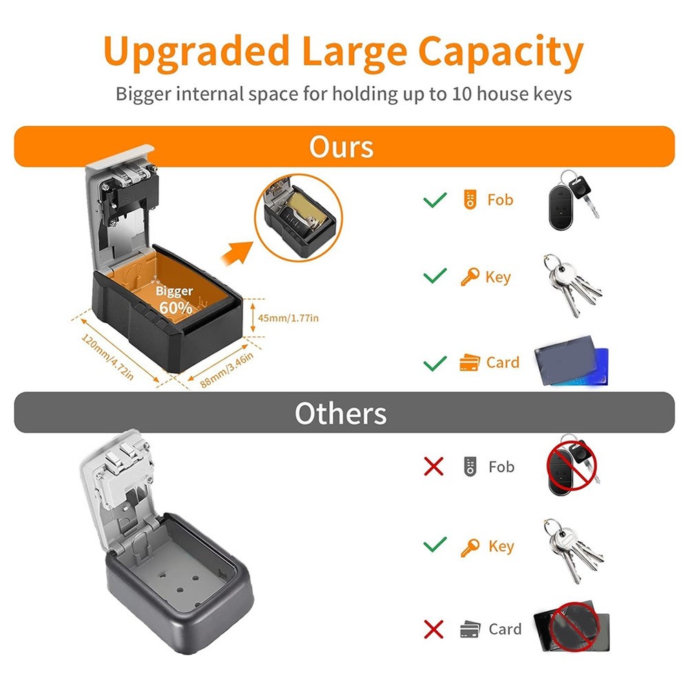 This sturdy key box is a lifesaver—perfect for storing spare keys securely. The heavy-duty zinc alloy build and hardened-steel shackle keep it tamper-proof, while the 4-digit combo lock resists weather and break-ins. Easy to reset with 10,000 possible combinations, it’s ideal for home, office, or Airbnb use. Mounts effortlessly, and the shutter protects the dials from the elements. Highly reliable and worth every penny!