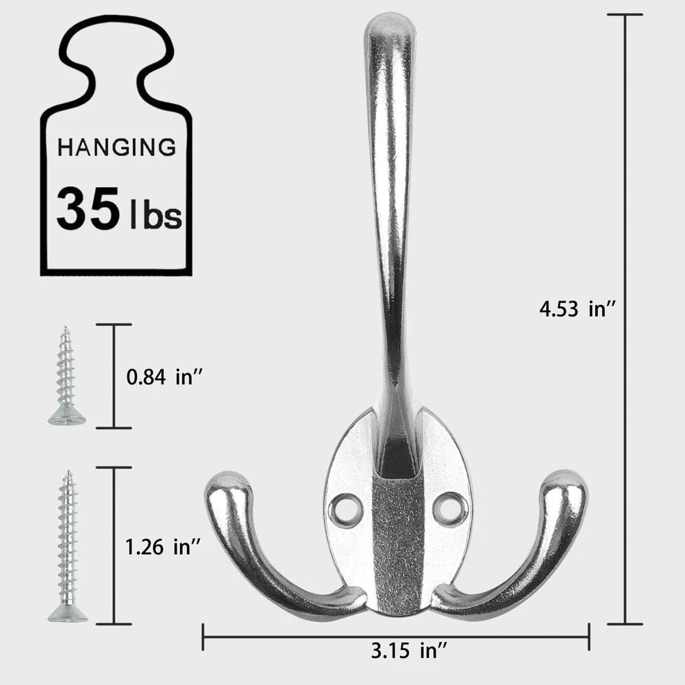 Wall Mounted Coat Hooks: Package includes: 5 pcs wall mounted black hooks 10 x long screws 10 x short screws Specifications: Material: Zinc alloy Withstand weight: 35 lbs Solid zinc alloy material