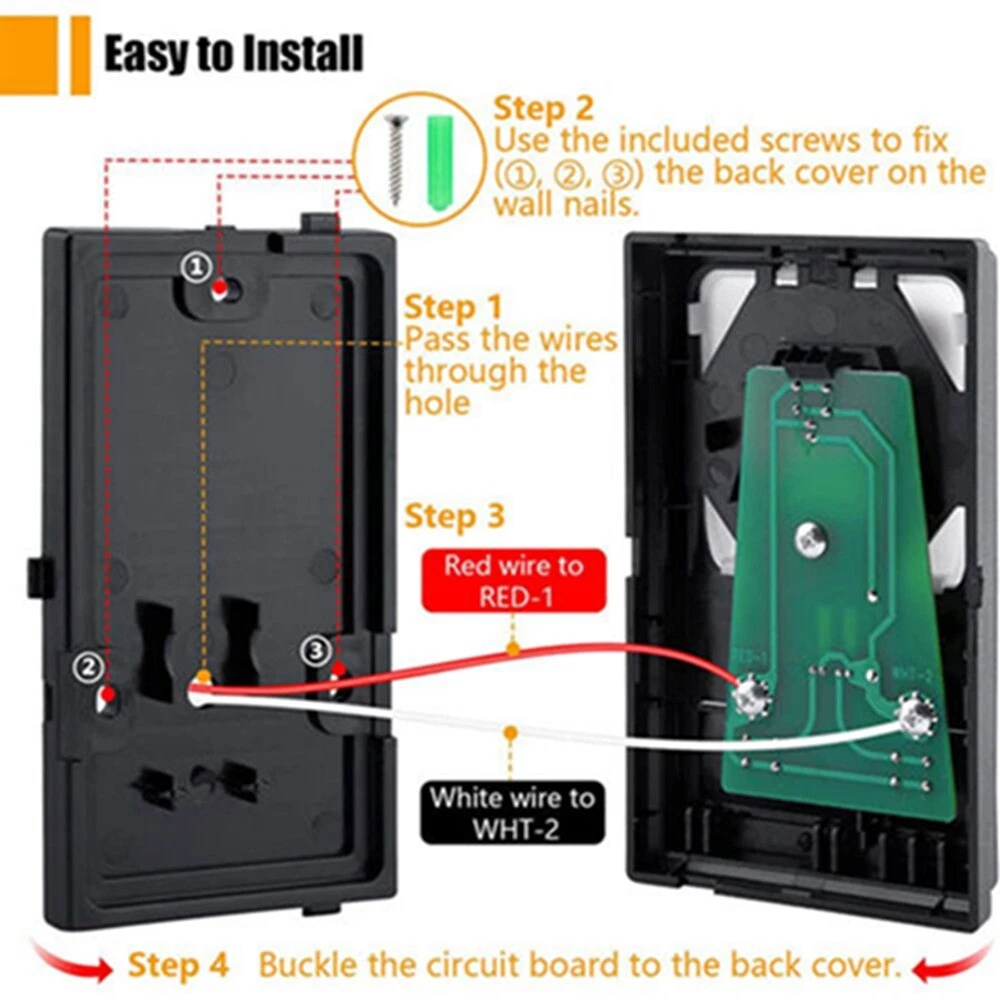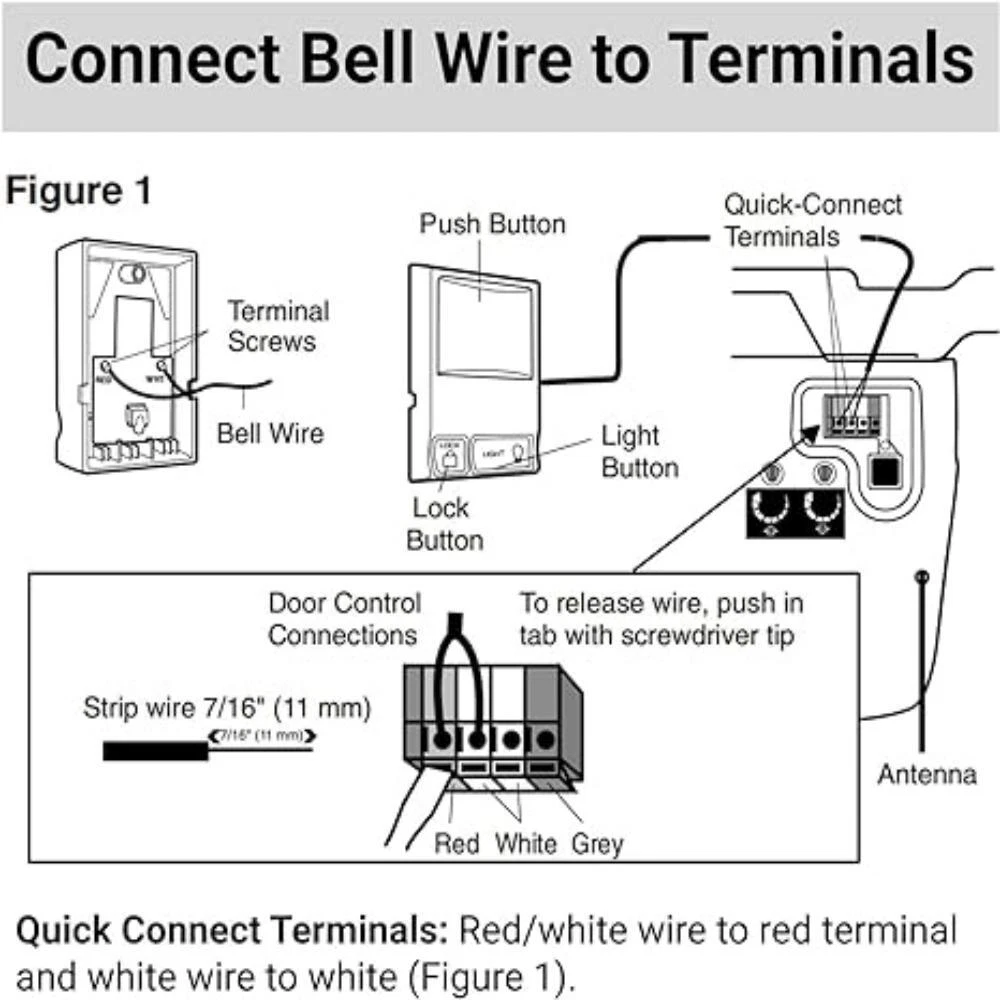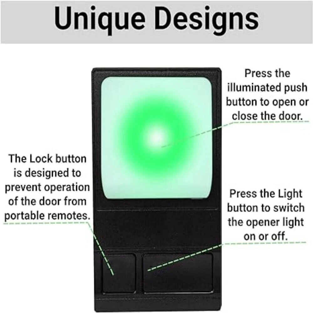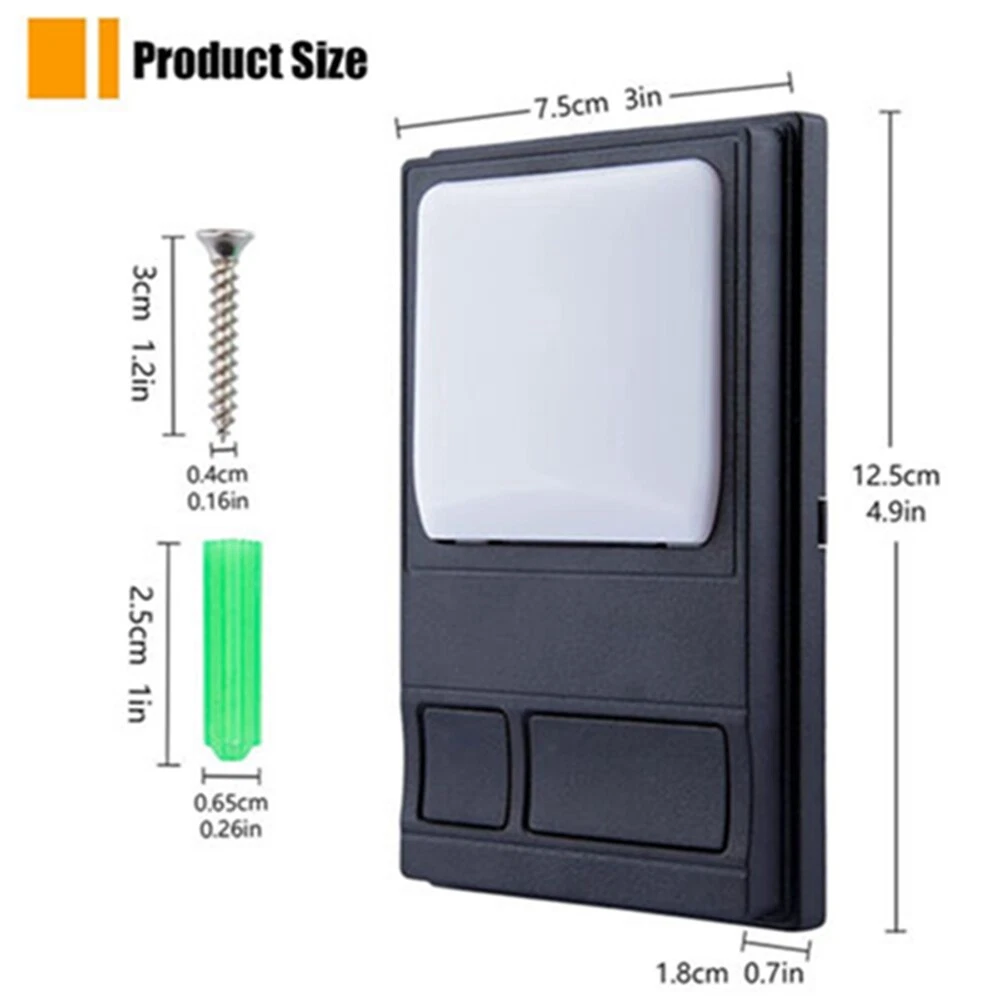 Store Categories Store Categories Wired Panel Wall Keypad Button Compatible with Liftmaster 41A5273-1 78LM Garage Door Opener Product Description For LiftMaster 78LM Security+ Garage Door Opener Multi-Fu nction Control Panel WIRED CONTROL PANEL INSTALLATION INSTRUCTIONS FOR USE WITH GARAGE DOOR OPENERS MANUFACTURED AFTER JANUARY 1,1995. To ensure proper function of your opener,remove all old or previous push buttons/wall control panels. Use only the enclosed door control for proper operation. To activate:Press and hold the Lock button for 2 seconds.The push button indicator light will flash as long as the lock is on. To turn off:Press and hold the Lock button again for 2 seconds.The indicator light will stop flashing.Normal operation will resume. The Lock feature will also turn off whenever the Learn button on the opener end panel is activated. Specification: item color: Black type: Wall Button material: Plastic/ABS size: 4.9*3*0.7in Fit Le arn Button: Purple, Orange, Red, Green. Fit For: Chamberlain, Sears, Master Mechanic, Garage Master, Wayne-Dalton and Raynor. For 78LM 79LM 81LM 371LM 971LM Package Included: 1 x Multi-Function Wall Console (Battery is not included) Features: Indoor wall-mounted door controller, compatible with Security + systems. Replaces standard door control buttons. Conveniently installed in the garage through your access door, Open the garage door at the touch of a button. Includes an oversized illuminated push button. Turn on and off opener lights to provide additional lighting for garage work. Features that lock all external radio signals for added security. All Security+ systems for LiftMaster (code rotation). Also compatible with Chamberlain, Sears, Master Mechanic, Garage Master, Wayne-Dalton and Raynor. For 78LM 79LM 81LM 371LM 971LM Installation 1. Disconnect power to the garage door opener. 2. Strip ¼” (6 mm) of insulation from each end of wire. Pass the wires through ④ places. 3. Use the included screws to fix the back cover on the wall nails.Fixed①,②,③ places. (Do Not overtighten,you may damage the plastic housing.) 4. The wires passing through hole 4 are connected to the two screw terminals on the Circuit board as shown below:Red/white wire to 1 and white wire to 2 WOTE: After installation, the indicator light behind the push button cover will indicate proper connection. 5. Run bell wire up wall and across ceiling to motor unit. Use insulated staples to secure wire to wall and ceiling in several places. Do NOT pierce wire wit h a staple, this will create a short or open circuit. 6. Strip 7/16" 11 mm of insulation from the end of the bell wire 7. Connect bell wire to terminals as follows: Quick Connect Term Screw Terminals:Red/white to 1 and white 2(Figure 2). 8. Buckle the circuit board to the back cover. 9. Reconnect power to the garage door opener. Payment Policy Shipping Policy Returns Policy Payment Policy we accept all the payment, such as the paypal payment, apply payment, google payment, and so on. we only ship to ur ebay's address, pls confirm it again before you payment, thanks . Shipping Policy All items will be shipped within 24 hours, expect weekends and holidays. All items will be delivered within 2-7 days. if over, pls contact us at first, we will help you solve it asap. Returns Policy Any problem, pls contact us any time, thanks so much !!! We will reply you within 24 hours. Copyright © 2023 Dianxiaomi