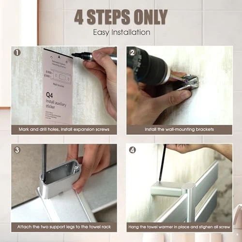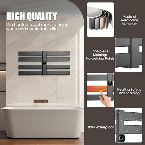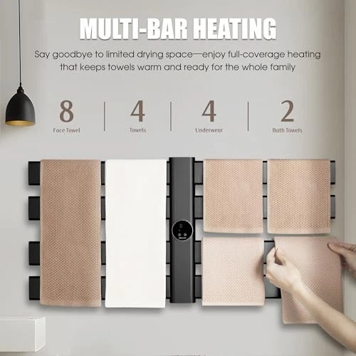 Return Policy Fast Delivery Trusted seller Electric Towel Warmer, 34.6"*16.5" Wall-Mounted 8-Bar Towel Heater with Built-in Timer, Waterproof Aluminum Towel Warmer for Bathroom, Support Plug-in and Hardwired, Black, Q4-B Product Description [Wider Panel & Separate Hanging Areas]: Designed for shared use, the split panel lets you hang towels separately—ideal for couples, roommates, or families who want to keep things clean and organized. The wider heating surface offers better coverage than standard models, drying a 16" x 28" towel in about 2 hours with evenly distributed heat [Rapid Heating Technology]: Reaches your desired temperature in just 1-3 minutes! The heated towel rack heats up to 122°F in around 2 minutes, and 140°F in around 3 minutes. Designed for energy efficiency, it features a power of 185W. Anti-scalding panels ensure safe handling, even at high temperatures [Easy 4-Step Installation]: Support both plug-in and hardwired installation.Follow the instruction manual, it only takes you 4-5 steps to finish the set-up. Available in various sizes and colors, it's versatile enough for bathrooms, kitchens, or any area needing quick drying [Smart & Upgraded Memory Function]:Seamlessly connects with smart plugs(not included) for remote control & scheduling. Even after a power outage, the towel warmer automatically restores your previous settings, ensuring effortless convenience every time [Premium Aerospace Aluminum Build]: Crafted from lightweight aerospace aluminum, electric towel warmer combines durability with a sleek, chic design. It's waterproof and anti-scalding, making it a safe and stylish addition to any space [Customizable Timer & Temperature Settings]: Featuring 5 timer options (2h/4h/6h/8h/on) and 3 temperature levels (about 104°F, 122°F, 140°F), this towel warmer adapts to your schedule and heating preferences, providing flexibility for different needs Special Notice: This product is designed for drying and mild warming. Meaning it can efficiently drying towels and maintaining towels at warm temperatures. Please note that it is not designed to make towels reach very hot temperatures like towel warmer bucket can get Shipping Returns Payment Shipping Shipping is FREE to all addresses other than APO/PO boxes in the lower 48 states. All our stock ships from US-based warehouses. Shipped via USPS or UPS (depending on location and package weight) Unless stated otherwise, all orders will ship within 24-72 hours of your payment being processed. Check our feedback to see the great reviews of FAST shipping we offer. Returns Seller does not accept returns Payment We currently accept payment via eBay managed payments only. Once payment is cleared, we will dispatch your shipment within 1-3 business days. Please refer to the "Shipping" tab for more information regarding shipping speed to your destination.