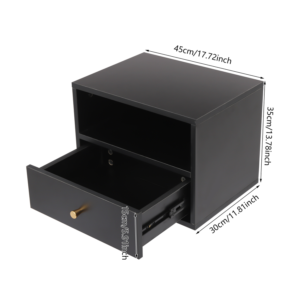 Floating Nightstand W/ Remote Control Soft Lights & Slide Drawers Wall-mounted Description In the Modern Home Design Concept Where Minimalism Is Prevalent, We Have Carefully Introduced This Minimalist Wall-mounted Floating Bedside Cabinet, Aiming to Maximize Functionality and Aesthetics with Minimal Space Occupation, Adding a Sense of Neatness and Elegance to Your Bedroom. Key Features Made to Last: This Product Is Made of High-quality Materials Treated with Fine Craftsmanship, Sturdy and Wear-resistant, Anti-corrosion and Impact-resistant, Ensuring a Long Service Life. Excellent Storage Function: This Product Consists of a Large Capacity Drawer and Two Shelves, Providing You with a Large Storage Space to Organize Your Daily Items. Space-saving: Adopting a Wall-mounted Design, It Is Fixed Directly on the Wall, Completely Releasing the Floor Space, Especially Suitable for Small Households or Those Who Pursue Minimalist Living Space. It Not Only Effectively Avoids the Problem of Dead Corners When Cleaning, but Also Makes the Whole Bedroom Look More Spacious and Bright. Atmosphere Creation: the Bedside Cabinet with Soft Glow-in-the-dark Lights in a Variety of Colors Provides Weak Illumination When Opened at Night, Avoiding Bright Light Stimulation, Creating a Warm Atmosphere and Facilitating Your Access to Items Without Disturbing Your Partner, Showing Humanized Care. Modern Decoration: After the Product Is Installed, You Can Hardly See Any Fixed Parts, and It Blends in with the Wall, Showing the Beauty of Clean and Smooth Lines, and Adding a Touch of Bright Color to Your Bedroom Decoration. Intelligent Control: You Can Adjust the Light Color, Mode, and Brightness to Create a Different Sense of Atmosphere Through the Equipped Remote Control for Your Convenience. Easy Assembly: Its Simple Structure, and Complete Accessoriesand Help You Finish the Installation Quickly and Use It in a Short Time. Effortless Cleaning: It Has a Smooth Surface and an Open Structure, so You Only Need to Wipe the Dust or Residue with a Towel. Ideal Gift: with Good Performance and a Modern Appearance, It Can Be Used As an Ideal Housewarming Gift for Parents, Friends, and Lovers so That They Can Also Enjoy a More Exquisite Life. Details Practical Handle: It Is Convenient for You to Open the Drawer to Get the Items. Pre-drilled Holes: They Help You Assemble the Product with Screws and Mount It on the Wall. Application This Product Can Be Installed in the Bedroom of Your Home, Hotel, Guesthouse, Etc. Specification Color: Black Material: Chipboard, Metal Style: Modern Assembly Required: Yes Mounting Type: Wall Mount Overall Product Size: 45*30*35cm/17.72*11.81*13.78in Package Size: 54*39*12cm/21.26*15.35*4.72in Gross Weight: 11kg/24.25lbs Net Weight: 9kg/19.84lbs Package Included 1* Floating Bedside Cabinet 1* Remote Control Other Accessories for Assembly Notes Normally, the Expansion Screw Will Blow up After the Force Is Applied. Please Allow the Slight Color Difference Caused by the Shooting Light and 1-3cm Error Due to Manual Measurement, and Make Sure You Do Not Mind Before Ordering. Payment Delivery details Terms of sales About us Contact us Payment We accept ebay payment 。 Fees such as import duties, taxes are not included in the item price or shipping costs. These charges are the buyer's responsibility. Delivery details Shipping: 2-9 working days to: USA Terms of sales We maintain high standards of excellence and strive for hundred percent customer satisfaction. Feedback is very important to us. We hope that you contact us immediately before you give neutral or negative feedback, so that we can address your concerns. It is impossible to address issues if we do not know about them! About us Your satis faction is our ultimate goal. We work hard to earn your trust and future business. Our certified technicians have tested each item before shipping. The unit comes with 1 year limited warranty on all manufacturing defects. a) If you receive a defective item, you may return it or ask for a discount. Please contact us within 14 days after you receive the package. b) What you returned must be intact and in its original packaging as re? u. Customer is responsible for shipping costs of the returned item. c) We will cover the cost of shipping back t with the shipping rate indicated in the registration page. We will send you a new unit or refund the full payment you paid. Thank you. Contact us Business Hour Business Hour: Monday To Friday: 8:30 AM to 5:00 PM (Beijing China time) Due to time zones, our reply to your questions may not be immediately. But within above working time, we will reply your email within 24 hours. If it's non-workdays, please kindly be patient and wait till Monday. Please contact us with ebay message. Please feel free to contact us if you have any questions. Monday To Friday: 8:30 AM to 5:00 PM (Beijing China time) Due to time zones, our reply to your questions may not be immediately. But within above working time, we will reply your email within 24 hours. If it's non-workdays, please kindly be patient and wait till Monday. Please contact us with ebay message. Please feel free to contact us if you have any questions. Brand Unbranded Item Length 45 cm, 17.72 in Item Width 30 cm, 11.82 in Item Height 35 cm, 13.78 in Type Bookcase Style Modern Color Black Mounting Type Free Standing Room Bedroom Material Chipboard, Metal Assembly Required Yes Package Size 54*39*12cm/21.26*15.35*4.72in Gross Weight 11kg/24.25lbs Net Weight 9kg/19.84lbs