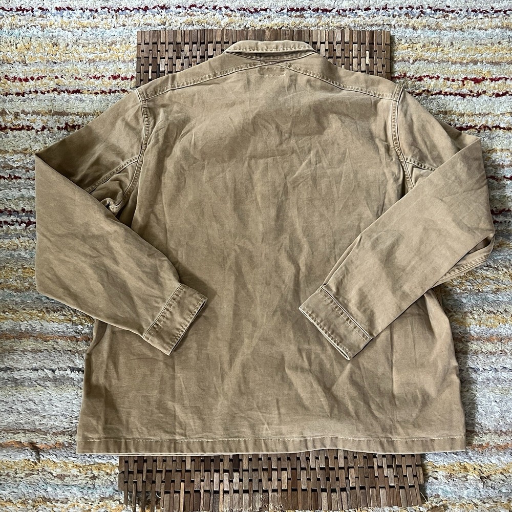 This Wallace & Barnes J.CREW button-down military jacket is a versatile addition to any wardrobe. Made from high-quality cotton, it features a solid beige color, button closure, and a button-down collar. The jacket is perfect for a variety of occasions, including travel, casual wear, work, and business. With its XL size, the jacket is designed to fit comfortably and features a range of pockets for storage. The jacket is suitable for a range of activities, including walking and hiking, and is perfect for both fall, winter, and spring seasons. The jacket is a great choice for any man who wants to add a touch of American style to their wardrobe.