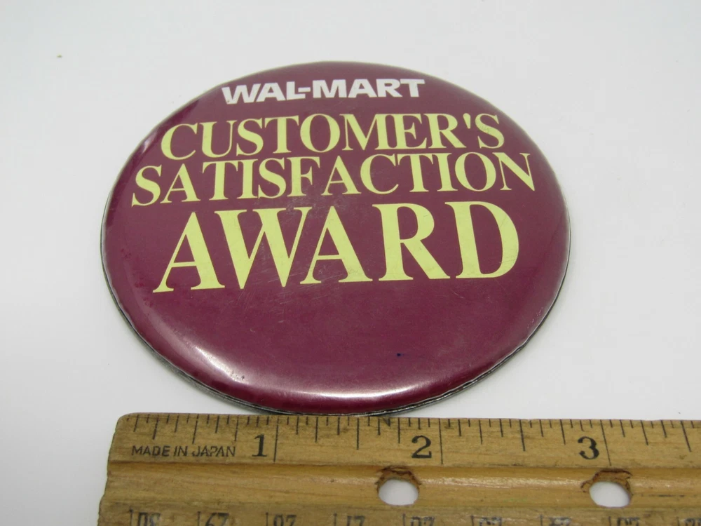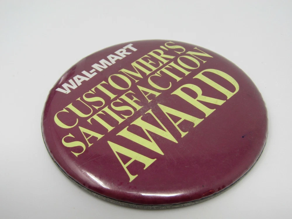Walmart Customer Satisfaction Pin Button Vintage ~ Almost all of our items are vintage and will have various degrees of wear, but we really don't carry anything that we wouldn't own ourselves. Please take a look at the pictures for the all vintage pins to get the best idea of wear. ~