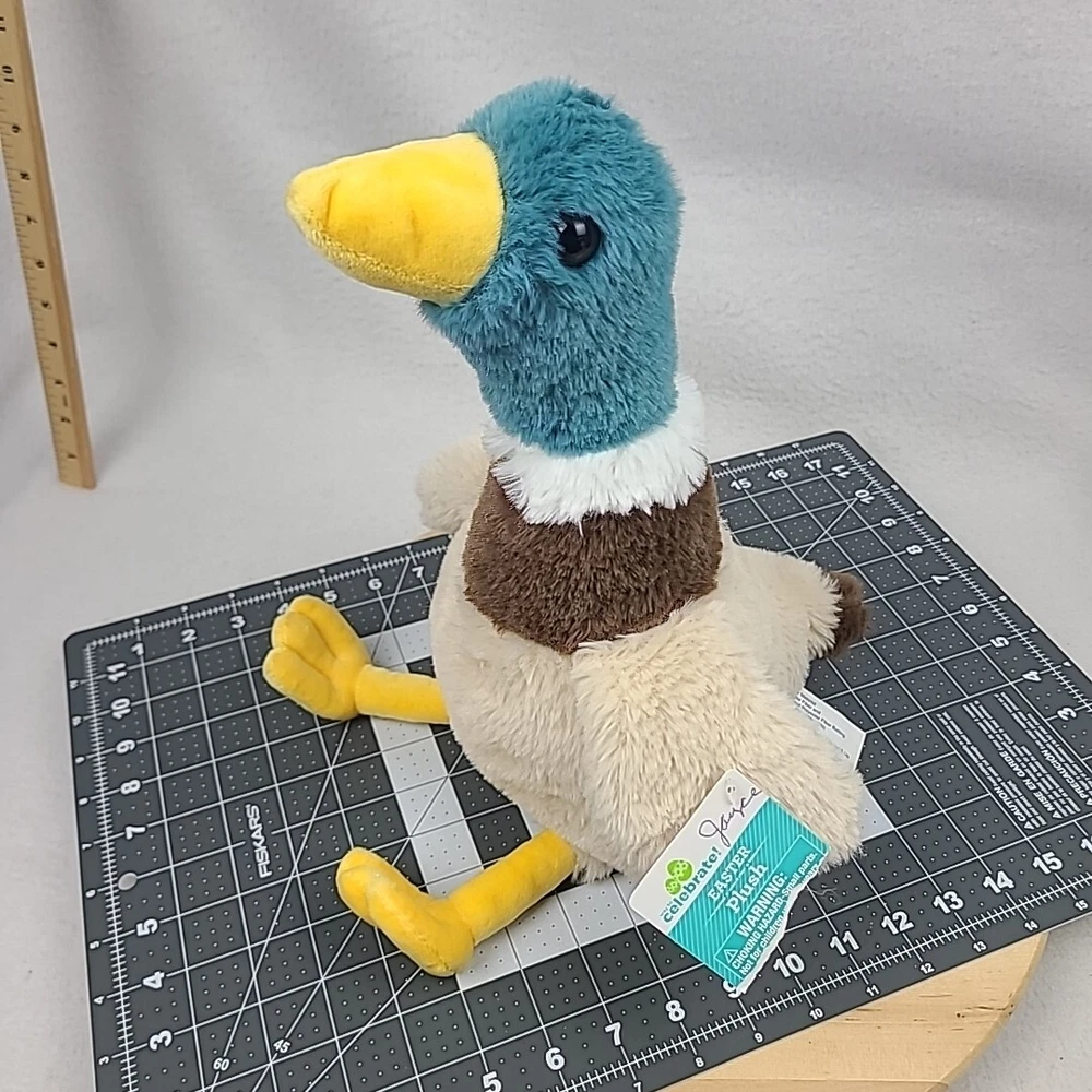 Type:plush stuffed animalgtin13:842993187654Animal:DuckColor:MulticolorCountry/Region of Manufacture:ChinaUPC:842993187654Size:Small (6-14 in)Age Level:3-4 Years, 4-7, 8-11 Years, 12-16 Years, 17 Years & UpBrand:WalmartSeller Notes:“great pre-owned condition, light play wear from play/handling, please view all pics.”Recommended Age Range:3+MPN:332106