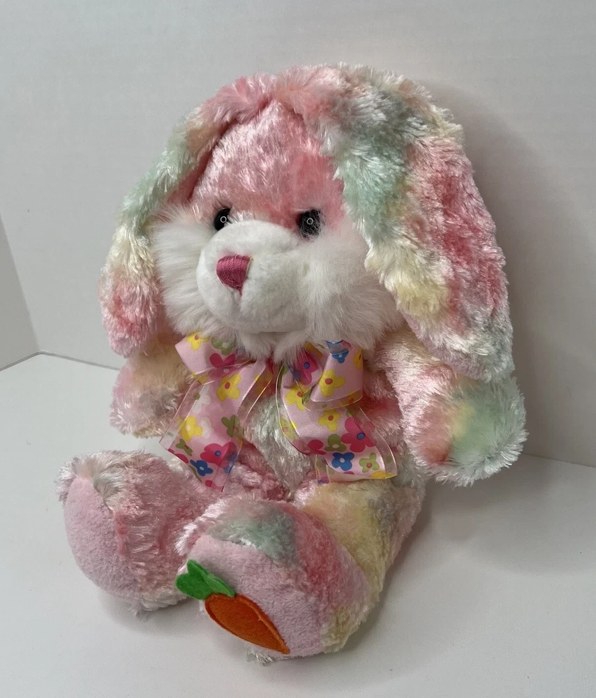 Up for purchase is a Walmart tie dye plush Easter Bunny rabbit. It measures approximately 13 inches long. It has a super cute flower ribbon bow around its neck. It is in very good condition. The tush tag is split in half. Please look at all pictures and use the zoom feature to get a closer view of the condition. The color shown in the picture is not 100% accurate due to lighting. My home is SMOKE FREE. Thank you for your visiting my store. I appreciate and value your business. Import duties, taxes and charges are not included in the item price or shipping charges. These charges are the buyer's responsibility. Please check with your country's customs office to determine what these additional costs will be prior to bidding/buying. These charges are normally collected by the delivering freight (shipping) company or when you pick the item up – do not confuse them for additional shipping charges. I do not mark merchandise values below winning bid amount or mark items as "gifts" - US and International government regulations prohibit this practice.