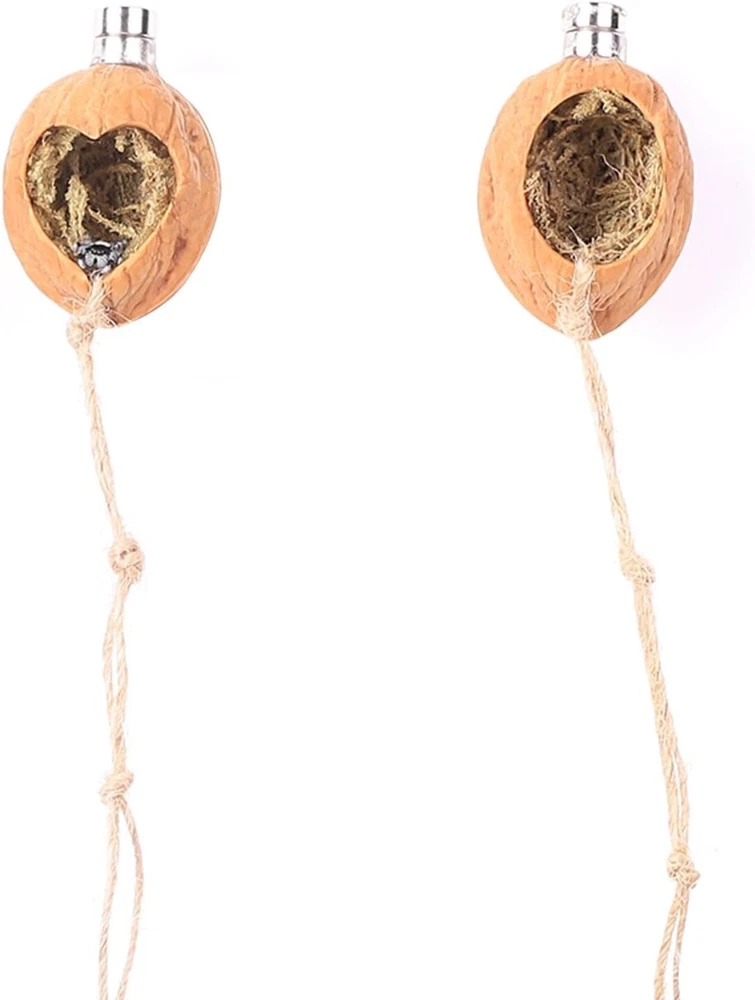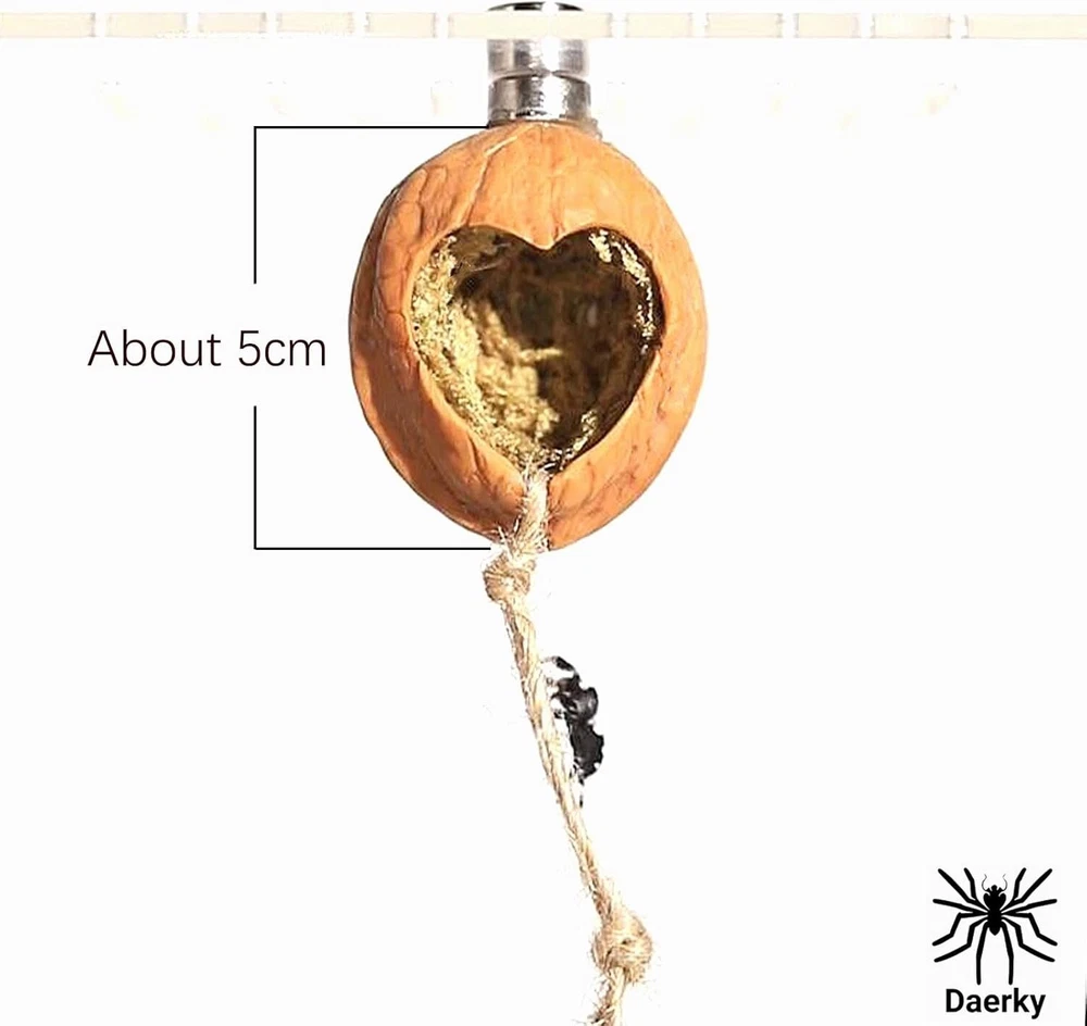 Walnut Skin Jumping Spider Hide - Magnetic Habitat & Accessories Product Description: Walnut Jumping Spider Hideouts, These walnut barks are perfect for jumping spider enclosures, available in oval, heart, and (large) moss balls, three options, real walnut barks for jumping spiders and other small pets. Walnut skin is a perfect choice to make fence for jumping spiders. There are oval and heart-shaped openings of walnut skin, which can be used as shelters for jumping spiders and other pets. 🕷️ Our cave for jumping spiders has strong neodymium magnet with large attraction force to ensure it will not fall off accidentally. It’s easy to install. You can use the extra magnet to fix the cave on the top of housing or any other places. 🕷️ Jumping spider cave, specially designed for spider lovers, the nest provides enough space for spiders to play, shelter and breed, jumping spider swing, the rope at the bottom can help the jumping spider babies to climb, it is a spider terrarium Great decoration. 🕷️ ATTENTION PLEASE: our cave for jumping spiders is hand made fully with walnut skin. Every walnut has slightly different size, shape and appearance, so what you receives maybe not exactly the same as the picture. ✉ 24-HOUR ONLINE SERVICE: We provide 24/7 online service. If you have any problems during use, please feel free to contact us so that your problems can be resolved quickly. Our products provide unconditional return and exchange services to provide you with quality services and a pleasant shopping experience.