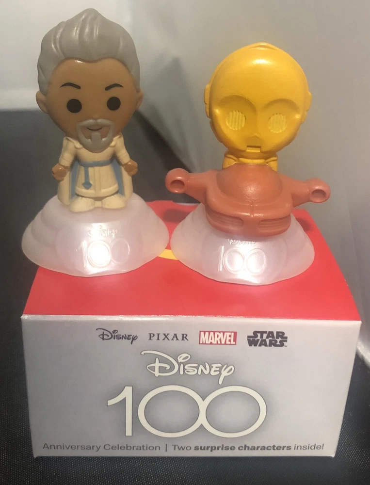 In honor of The Walt Disney Company’s 100th Anniversary, McDonald’s is teaming up with Disney to release 62 Disney character figurines. Listing is for C-3PO and King Magnifico Figurine Set. Box 28