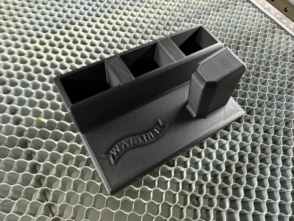 Display stand has 3 magazine slots and is an excellent addition to any gun safe. This was created by a small business located in the great USA 🇺🇸. These are carefully crafted through 3d printing resources. Fast free & safe shipping. Sent first class mail via usps *may show slight imperfections cosmetically due to the printing process , this in no way affects form or function.