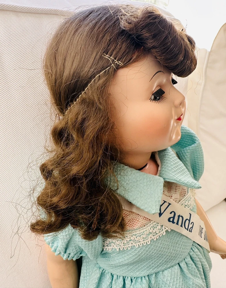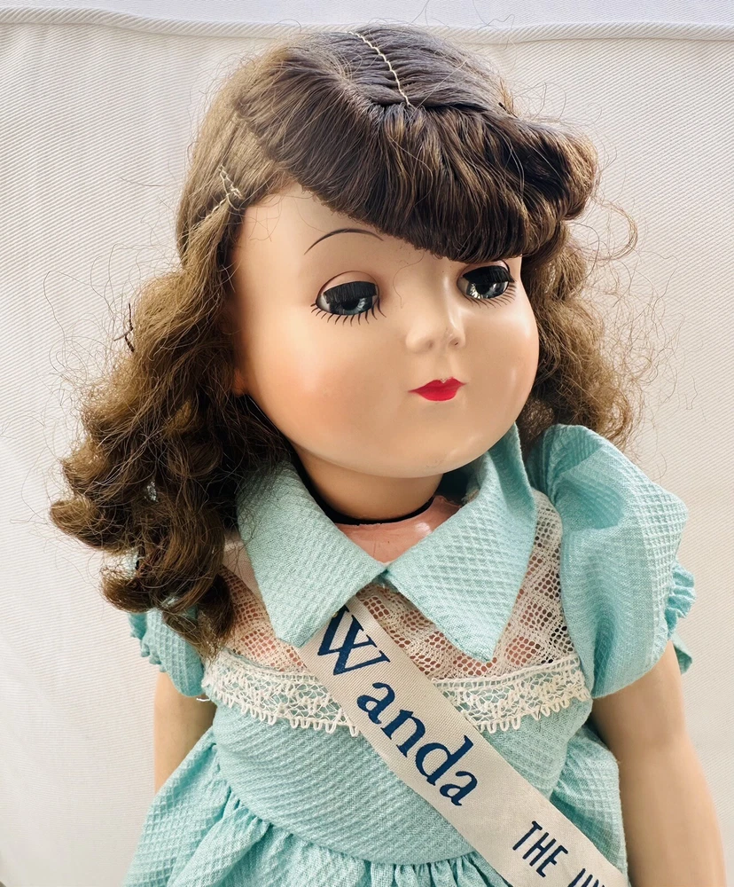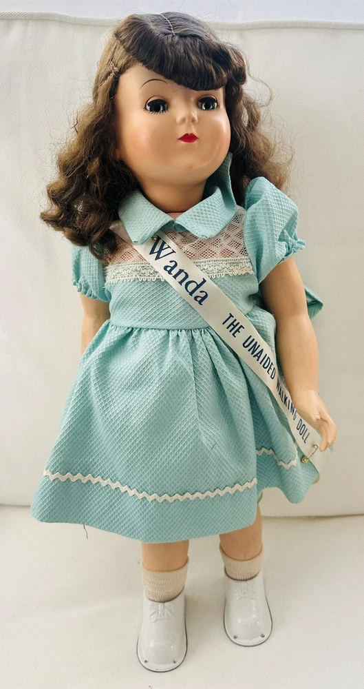 Handmade:NoFeatures:Collector Toy, Eyes Open and Close, Interactive, No Battery Used, Removable Clothes, Special Edition, Timeless Treasure, WashableSigned:NoCharacter:WandaCountry/Region of Manufacture:United StatesUPC:does not applyUnit of Sale:Single UnitYear Manufactured:1950Ethnicity:Caucasiangtin13:does not applyBrand:Advance Doll & Toy CoOccasion:All OccasionsOriginal/Licensed Reproduction:OriginalType:Play/Collector Dol + Small 7.5" dollItem Length:18 inDoll Complexion:LightDoll Eye Color:BlueDoll Hair Color:BrownTime Period Manufactured:1950-1959Doll Hair Type:WavyDoll Gender:Girl DollMaterial:Hard PlasticVintage:YesSet Includes:DollAntique:Yes