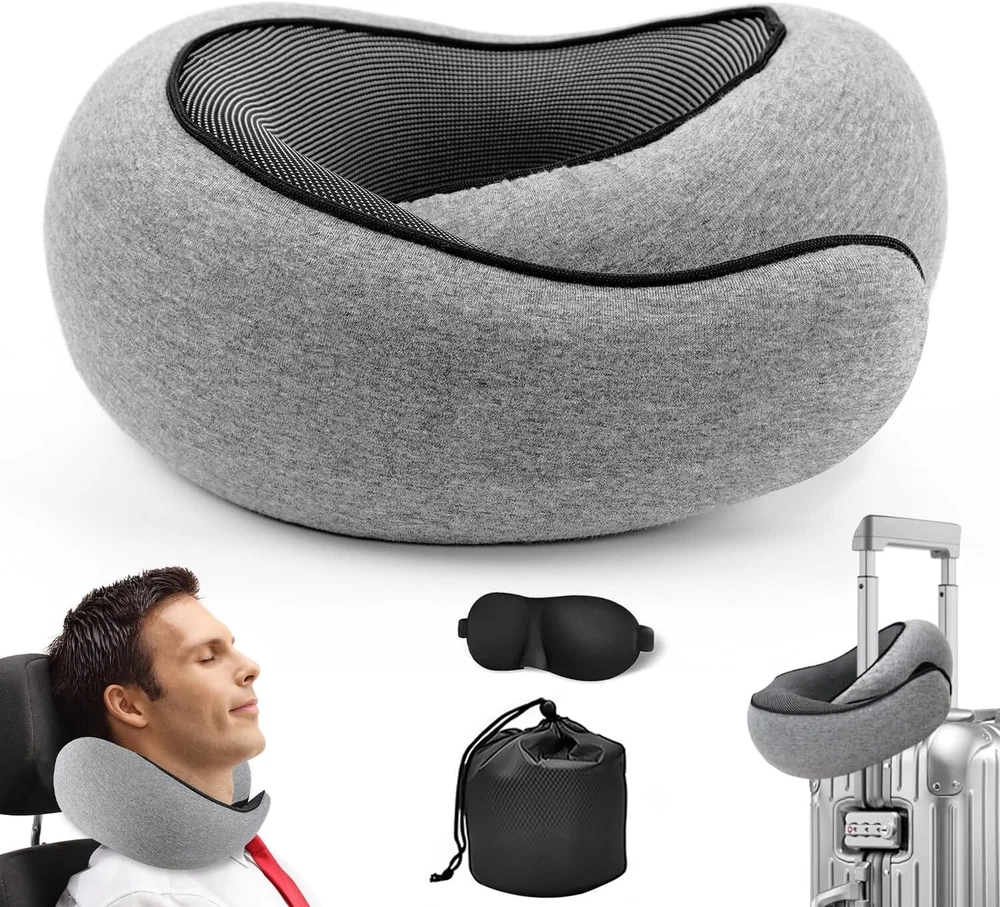 About this item Neck Pillow for Traveling: The pillow with its chin wrap, which you can maintain an upright posture and can reduce neck, shoulder and back discomfort caused by traveling in cars and airplanes Enjoy a Real Sleeping Experience on Long Flights: Add our neck pillow to your long flight essentials’ list to experience a deep sleep during lengthy flights Memory Foam Pillow: Travel pillow uses the latest filling technology and memory foam, with high resilience. With 5-second return technology is comfortable and durable, and can be freely adjusted for tightness Easy To Carry: Our Pillow's lightweight design allows you to attach it to the outside of your backpack or luggage easily without feeling weighed down Great Relax Gift: This neck pillow provides additional support to protect the neck from pain when sitting on the seat in an plane, car, train or bus. It is a perfect gift for your relatives, friends, colleagues and parents