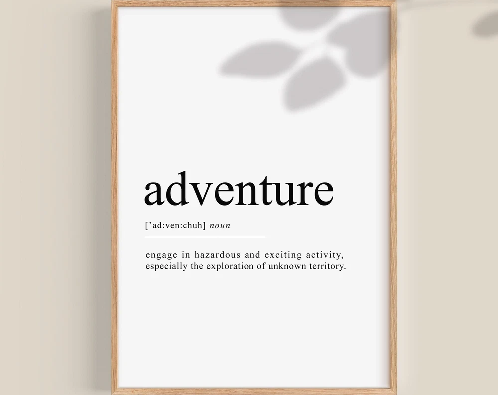 Wanderlust Gifts Adventure Definition Print Wall Art Travel Poster Climber Hiking Explorer Gifts Leaving Gift Material: Premium luster photo paper Print type: Inkjet printing One side printed + The finish provides the highest possible resolution and color saturation + Lasts up to 200 years in color and 400 years in black-and-white + Printed on high-quality resin-coated photo base paper medium + Posters can be hung with double-sided tape, tacks, or framed + Hand washing with a gentle cry cloth is recommended for extended durability I will hand select the best choice of paper for your chosen design to ensure top quality results for a beautiful, bright and luxurious print. All prints are sealed in cellophane slips for protection during transportation, and are shipped in a protective cardboard envelope.