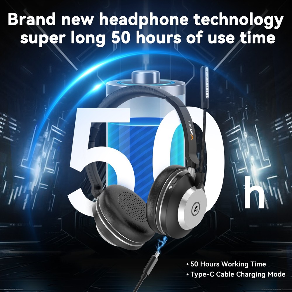 About this item ✅【AI Intelligent Noise Reduction Microphone】Wantek wireless headset for computer with AI environmental noise cancelation microphone, it can eliminate up to 99.99% of the ambient noise. So you can hear and be heard clearly wherever you are ✅【Bluetooth Headphones】On-ear headphones connect quickly to your phone or tablet via Bluetooth. Phone headset with built-in audio sound card ✅【Adjustable Headset】The padded headband of the wireless headset is adjustable and stretchable to fit your head perfectly, suitable for both children and adults. Soft protein memory foam ear cushions are made with premium breathable material, ROHS certified material prevents ear heat and sweat(The microphone return to home position can mute the function only applies to the call state) ✅【Battery Power】The Bluetooth headset provides up to 14 hours of continuous talk and 200 hours of standby time on a single charge, plus 2 hours of work time with a 10-minute quick charge. Long battery life brings convenience to your life ✅【24 Months Warranty】Maybe we can't be 100% satisfied with our electronic products, but we will try our best to be 100% satisfied
