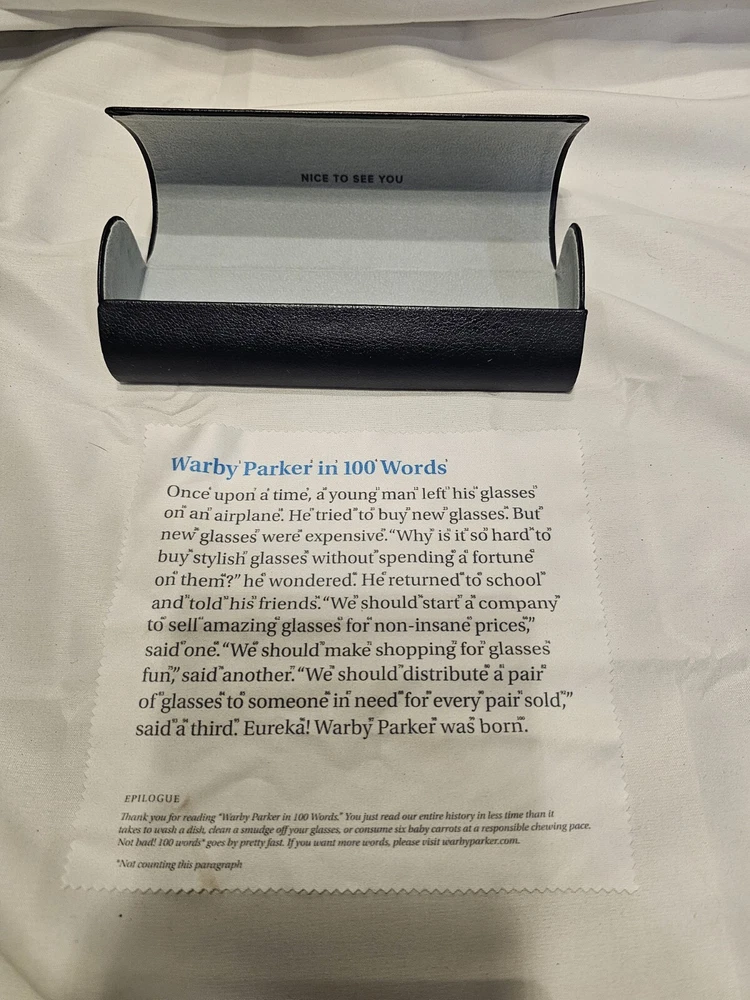 Warby Parker EyeGlasses Sunglasses Case With Cleaning Cloth.