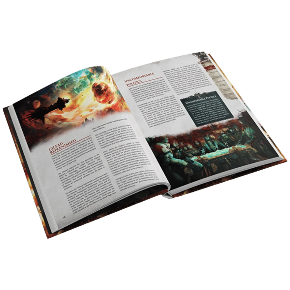 Cubicle 7 Warhammer 40K: Wrath & Glory RPG - Vow of Absolution Vow of Absolution - A definitive guide to The Absolvers Chapter of the Adeptus Astartes. Bound by long sworn oaths to defend the Gilead System, the Space Marines of the Absolvers now find themselves the last bulwark against the encroaching darkness. Trapped by the opening of the Great Rift, the Absolvers find their numbers dwindling as they desperately defend humanity in a system cut off from the Imperium’s might. Vow of Absolution introduces rules and mechanics focused around playing as an Absolver, including important GM advice on introducing Tier 5 Agents and running campaigns focused around the heroic military deeds of the most iconic warriors in the 41st Millenium! Vow of Absolution features: A plethora of new playable Astartes Archetypes and Talents. Access to the Armoury of the Absolvers, with devastating new Wargear and Equipment. Dedicated Psychic Powers and Litanies of Battle for Astartes Librarians and Chaplains. Scourge of the Dark Heart – A Tier 4-5 Campaign Framework against the sinister Drukhari. Vow of Absolution provides an in depth and detailed look at The Absolvers and brings a variety of thematic new skills and lore for both Players and GM’s to add depth and variety to their games of Wrath & Glory! Pages: 128