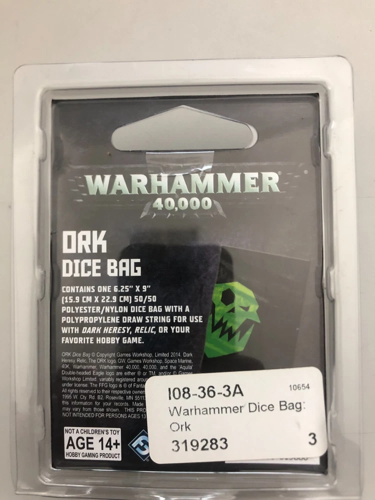Warhammer 40k Ork Dice Bag BRAND NEW SEALED Orks OOP Fantasy Flight GWS15 Officially Licensed Merchandise by Games Workshop 2014 INTERNATIONAL CUSTOMERS: If you want to use the Global Shipping Program OR Ebay International Shipping but it's not shown LET ME KNOW! I can fix that for you before you pay ;) XXX-06-24 COMBINED SHIPPING! Buy more than 1 item and all items after the first will have reduced shipping costs! If you are buying from overseas take advantage to save TONS of shipping cost by buying multiple items. I have several other items for sale that you may be interested in and combined shipping makes it extremely economical to buy multiple items instead of just one. For example any other blisters you buy from me today will ship for 50 cents each instead of $15 a piece because they will be in the same box as your original purchase 😉 Check out my EBay store for more items! I will correct shipping manually because Ebay doesn’t combine it accurately for separate lots. This product is suitable for Warhammer, Age of Sigmar, Kings of War, The Ninth Age, Warhammer 40,000, 30,000, 30k, 40k, 28mm miniatures On Jun-09-19 at 20:08:25 PDT, seller added the following information: Thank you! Any questions, please ask before you buy :) SC = Softcover, Trade Paperback, TPB