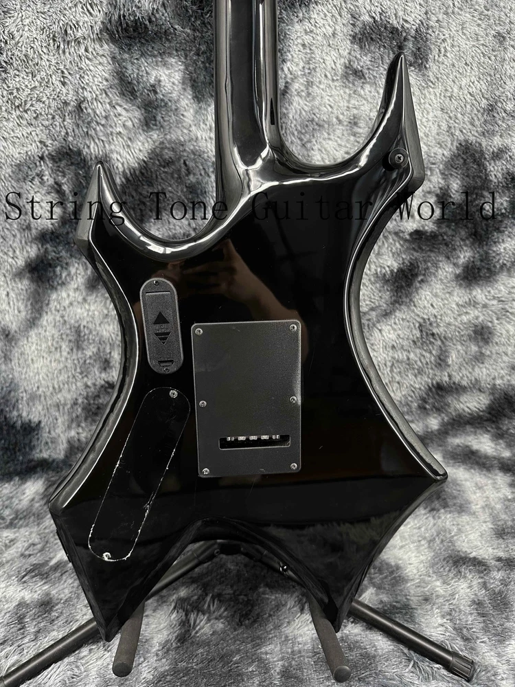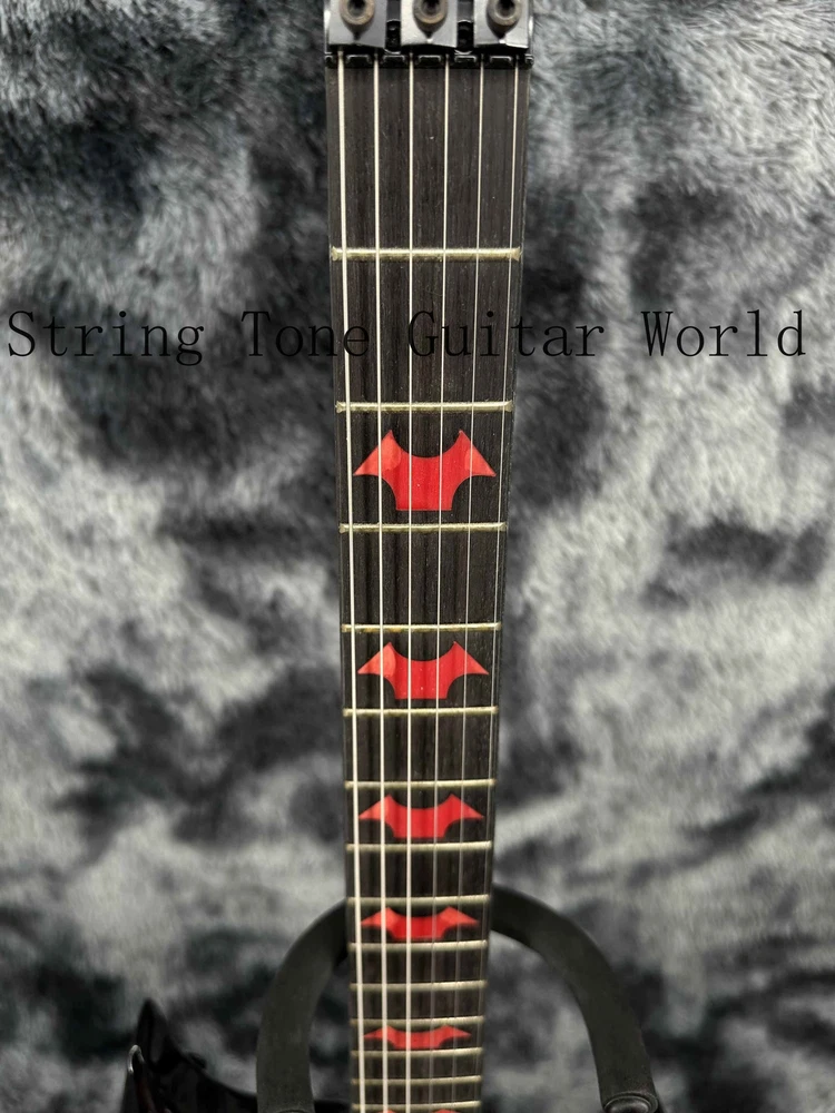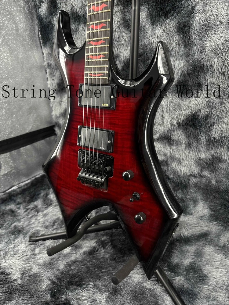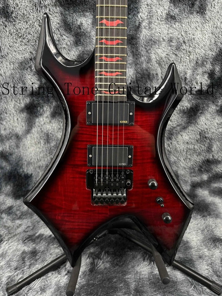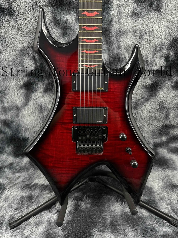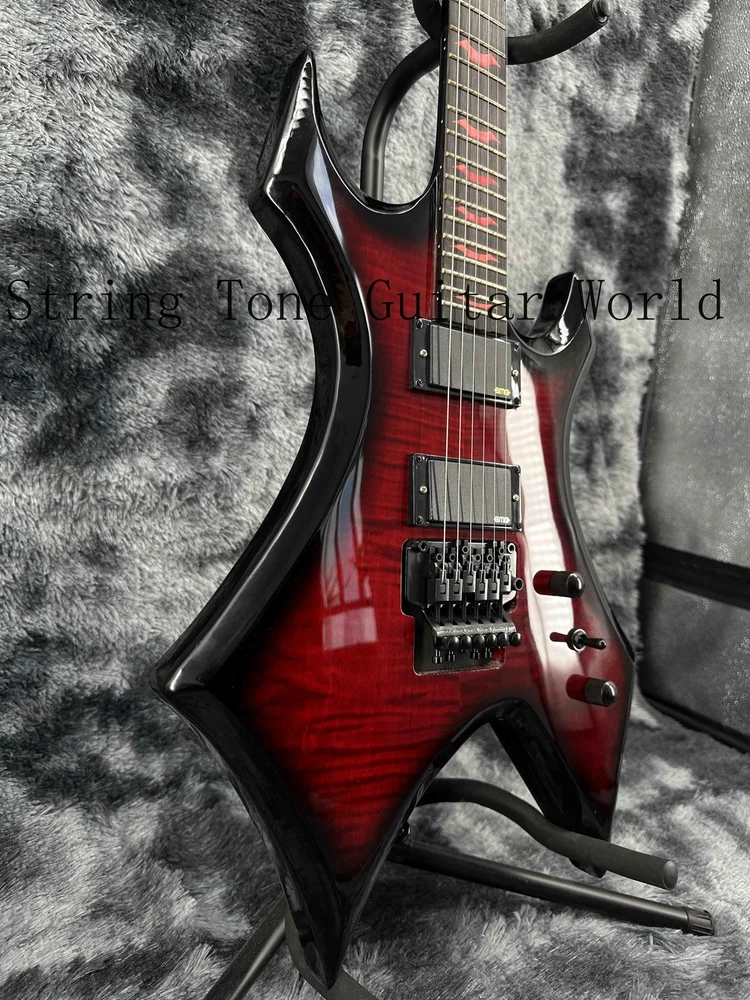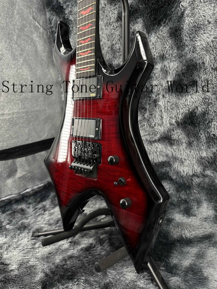 Warlock Red Flame Maple Top Electric Guitar Black Fretboard 2H Pickups Fast Ship