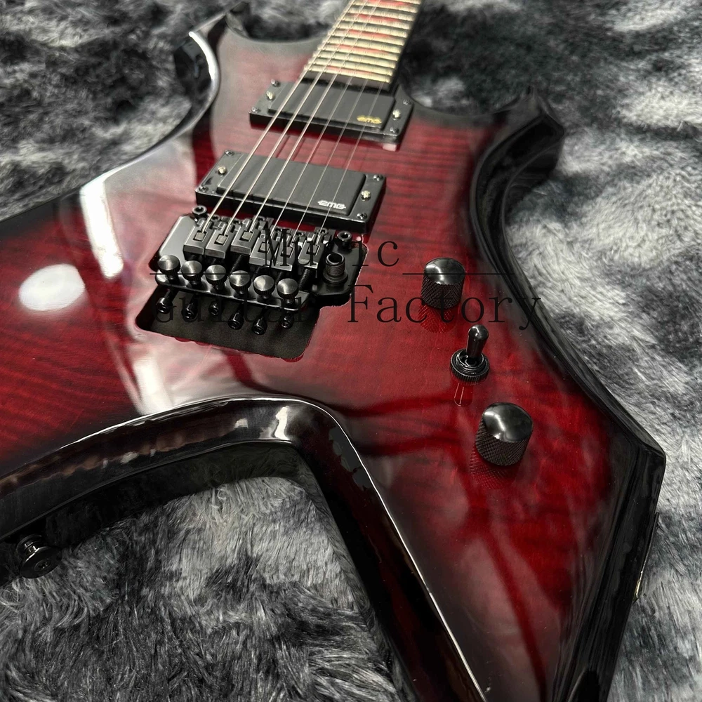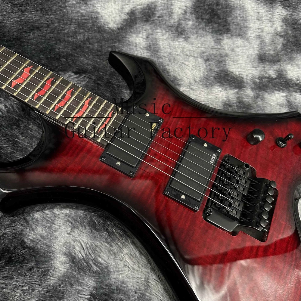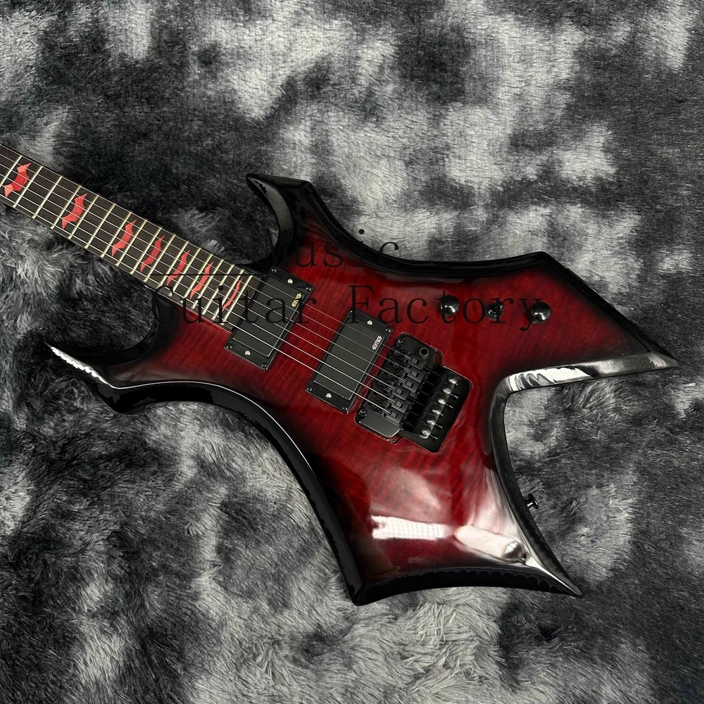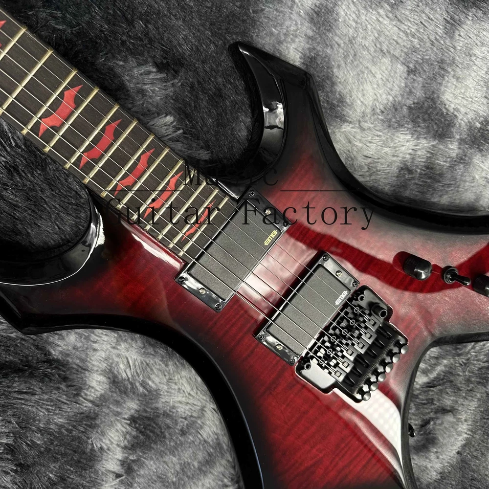 Warlock Red Flame Maple Top Electric Guitar Solid Black Hardware Black Fretboard