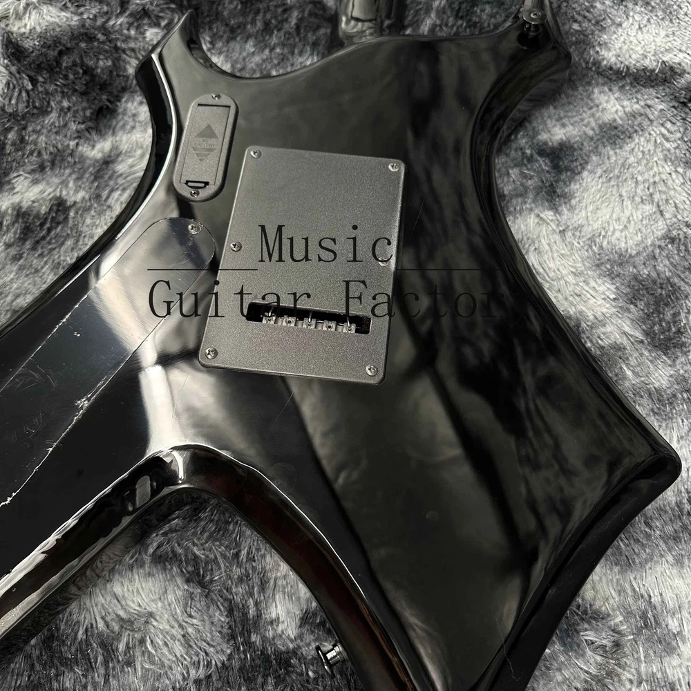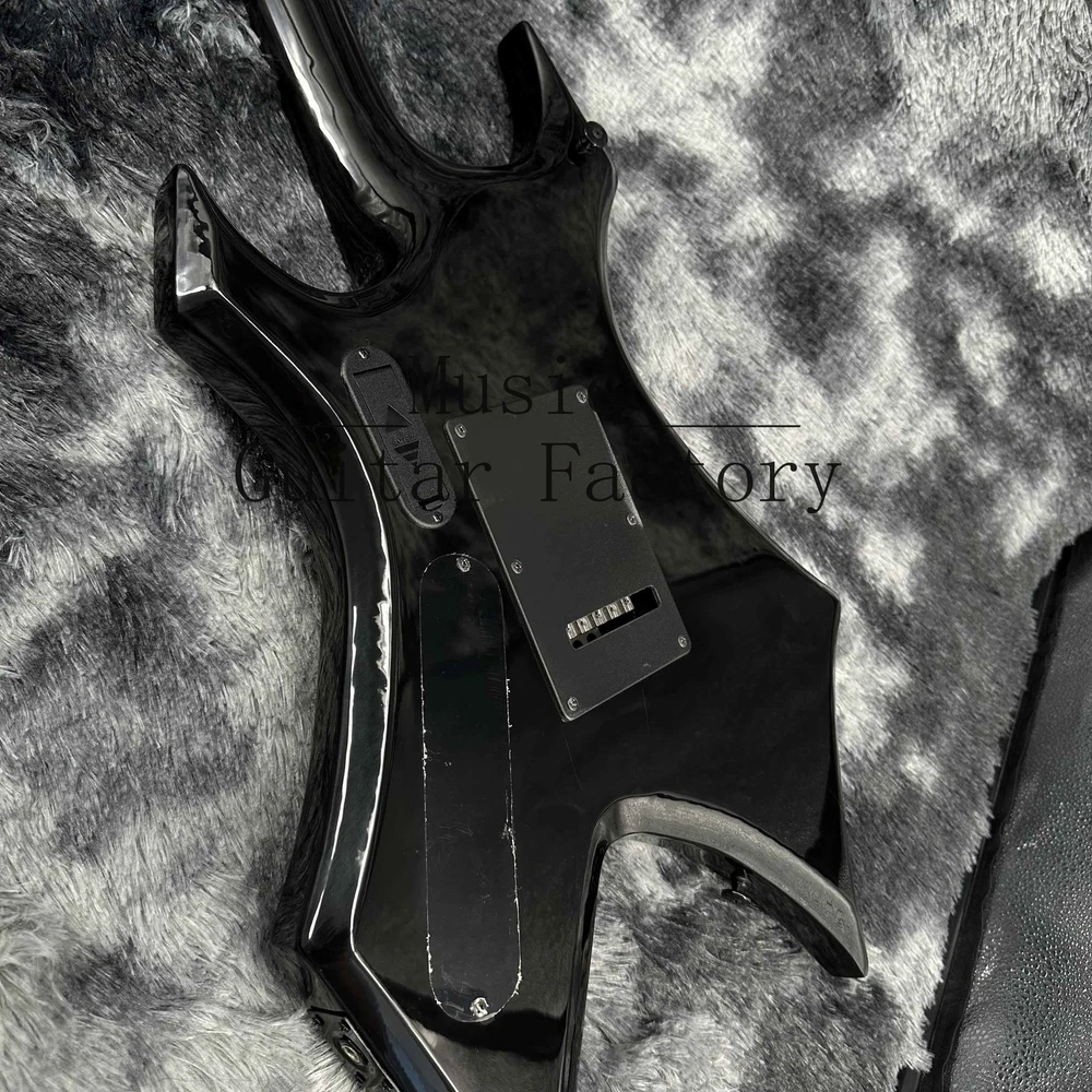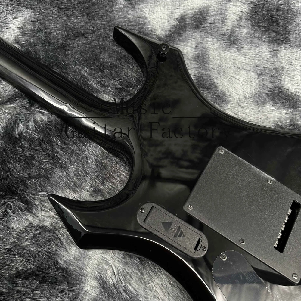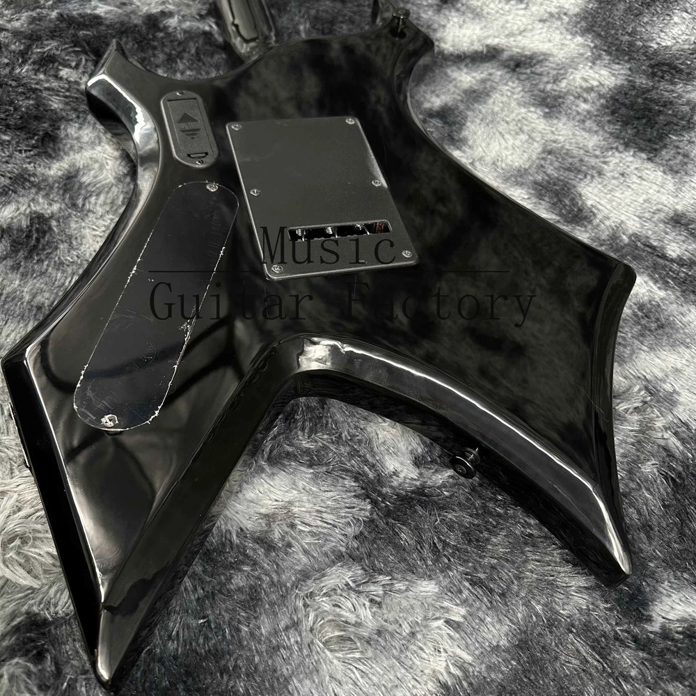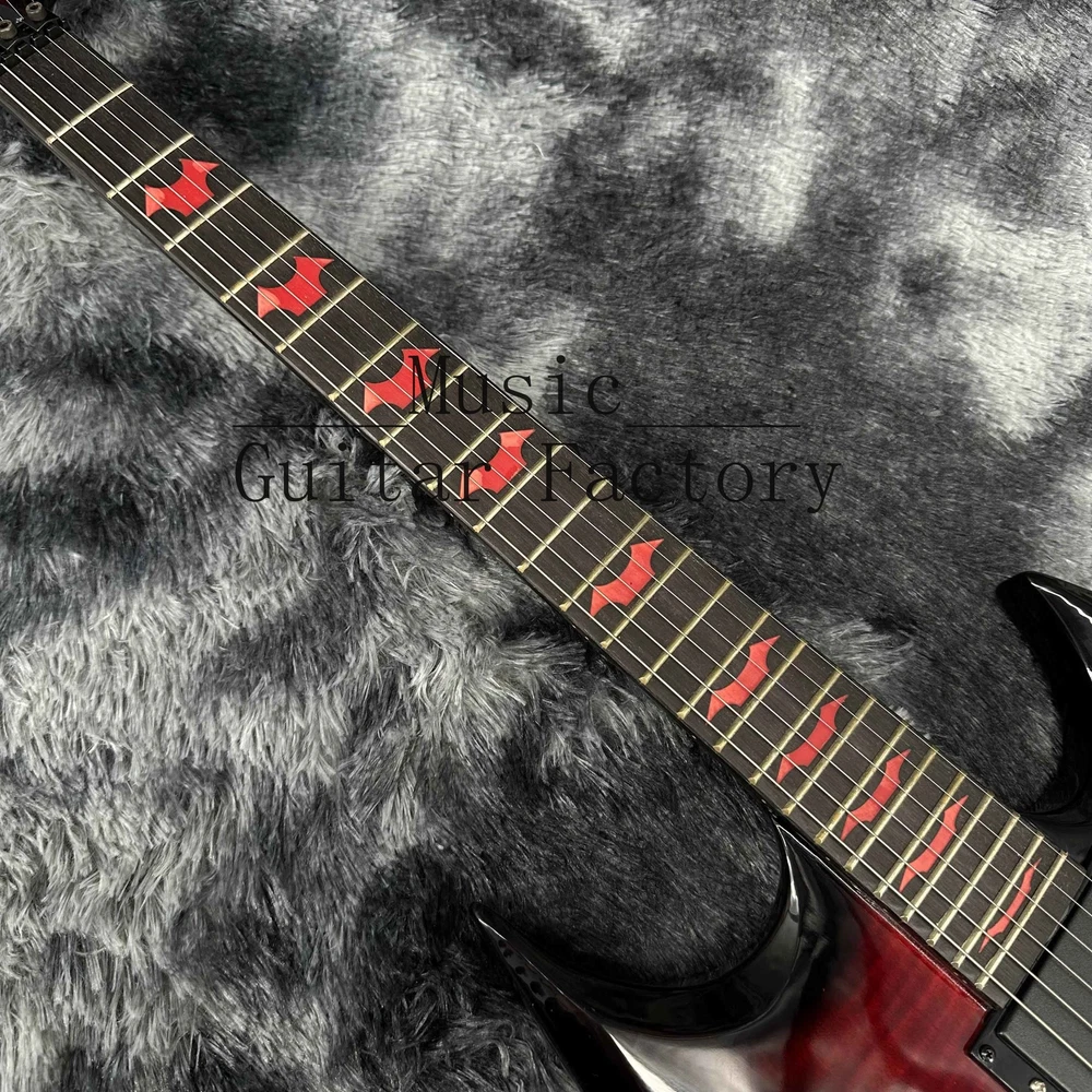 Warlock Red Flame Maple Top Electric Guitar Solid Black Hardware Black Fretboard