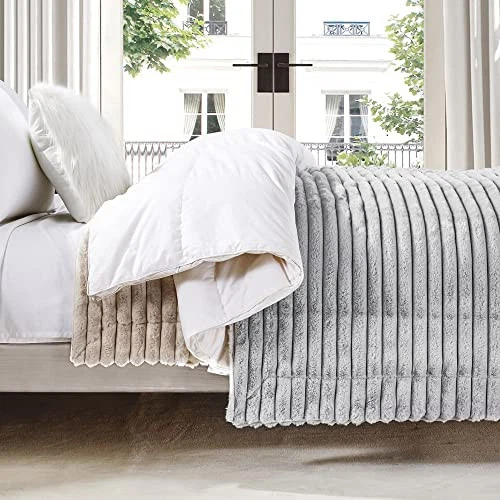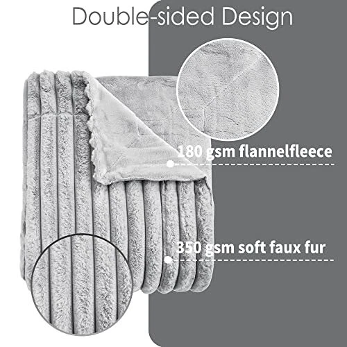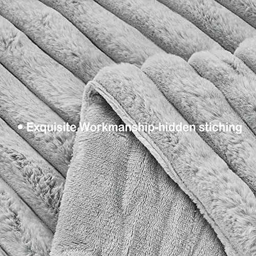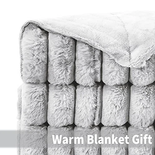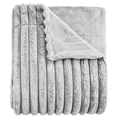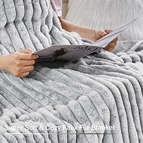 Double-Sided Faux Fur Blanket: High-grade striped rabbit faux fur face design in classic grey color, makes this faux fur throw blanket feel warmer. The skin-friendly flannel fleece fabric in reverse gives you a more cozy feeling. Luxurious and Decor Fleece blanket: This fuzzy blanket is designed for a luxurious feel and elegance, add extra texture to your decor and turns your room into an inviting space with this simple yet classy elegant design. Warm and Cozy Fleece Throw Blanket: fluffy throw blanket (60” x 80”) is better for a twin-size bed or a full-size bed, a perfect companion for snuggling up on the couch, a bed to watch TV, or for nap time. All Seasons Cozy Faux Fur Blanket Gifts: Our gray fuzzy blanket has a beautiful, elegant look and brings you a warm and cozy feeling during daily life, can be a special gift on Valentine's Day, Christmas, and Halloween, Thanksgiving Day, New Year, or Birthday. You can always choose our minky blanket as a sweet surprise for others. Easy-care Faux Fur Throw Blanket: No shedding, anti-static, super soft, durable, breathable, fade resistant, and machine washable, our faux fur throw blanket will look like new after washing, even after using for a long time.