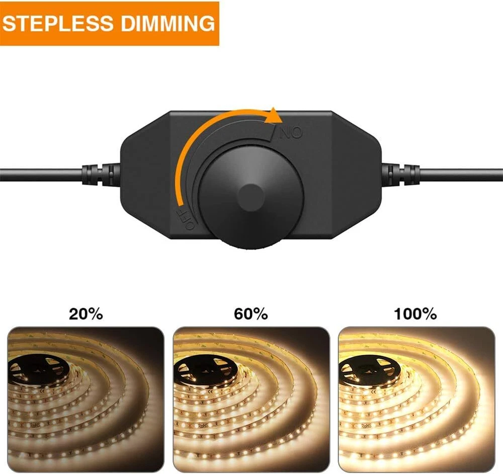 Warm LED Strip Lights,Onforu16.4ft Dimmable 16.4FT, White Product Details Color: Warm White Brand: Onforu Indoor/Outdoor Usage: Indoor Special Feature: Dimmable, Safety, Energy saving, Skin friendly Light Source Type: LED Power Source: Corded Electric Light Color: Warm White Theme: decoration Occasion: Anniversary, Party, Mirror, Under Cabinet Style: Modern Super Bright Strip Lighting: Onforu with 300 high-brightness 2835 LED beads, can produce up to 1200 lumens. Pretty suitable for indoor lighting and decoration. Such as the living room, kitchen, under cabinet, dining room, bedroom, party, stairway, wedding, Halloween, Christmas, etc. Note: The distance between two beads is 0.066 ft Premium Dimmable Feature: These warm white strip lights are equipped with a dimmer (included), allowing you to adjust the brightness conveniently. Rotate the control box simply to dim or brighten the warm white LED strip lights to your desired level for various occasions Certified Safety Assurance: Our strip lights come with a UL-listed power adapter, ensuring their reliability. With a working voltage of 12 V, these lights produce extremely low heat, making them touch. You can use them with peace of mind, whether you want to create a cozy ambiance or enhance your home decor, these lights are a perfect choice Easy Installation and Cuttable: Self-adhesive back with adhesive tape for safe and easy application. And it can be conveniently cut along the cutting marks on the copper sheet, without causing any damage to the remaining strips. This allows for flexibility in achieving the perfect length for your desired lighting arrangement What You Get: 16.4 ft/ 5 m LED strips, a UL Listed power supply with a dimmer, and 6 fixing clips