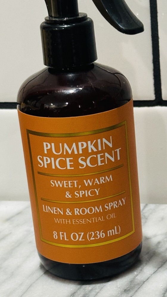 The "Pumping Spice Scent Sweet Warm & Spicy Linen & Room Spray Essential Oil 8oz" is a modern-style spray air freshener designed for indoor use, specifically in bathrooms. It comes in an 8 fl oz plastic bottle with a brown color scheme and a floral theme. Manufactured in 2024 by Absolute Aromas under the brand Essential, this aerosol spray features a linen scent that serves as a deodorizer. The product is a single pack and is powered by an aerosol mechanism for easy dispensing.