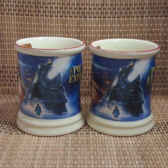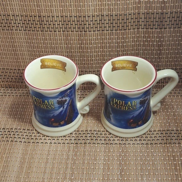 The Polar Express Set of 2 3D Coffee,Tea,Chocolate Mug Blue & Ivory *Brand - Warner Bros. *Set of 2 Coffee Mug *Color - Blue & Ivory *Condition - Excellent (Never been used) *Please see all the photos in Zoom to appreciate the details. (Please check for all the sizes on some of the pictures from above) *I described this product the best way possible. *If you have any questions, please let me know.