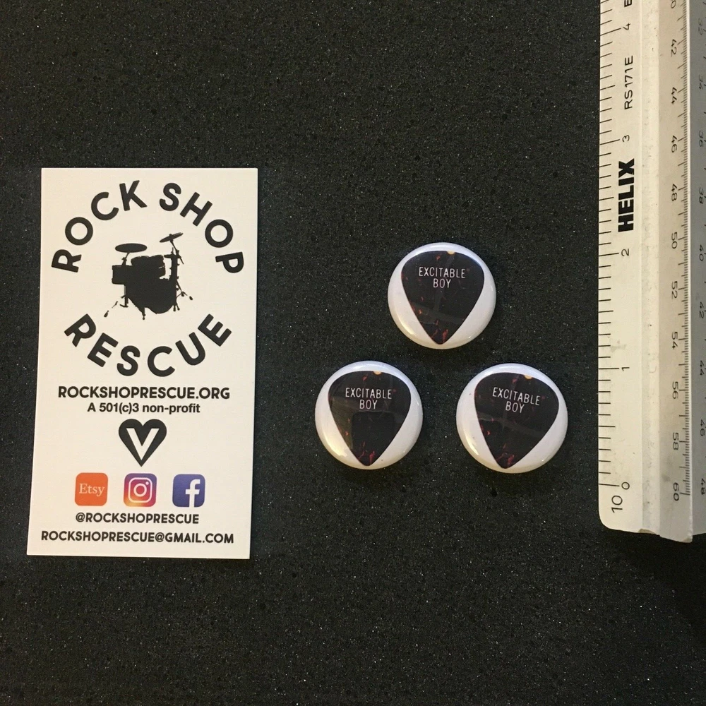 Set Of 3 Warren Zevon Excitable Boy Pin Back Button Set You receive 3 (three) brand new, collectible 1" inch size pinback badges. Rare Excitable Boy guitar pick retro image rock pins for your favorite jacket, shirt, hat, or bag! These are buttons, not actual guitar picks. (Buttons shown alongside a ruler for size measurement) Rock Shop Rescue's exclusive "RE-CLAIM - RE-MIX - RE-MASTER" Series 1" Size Collectible Button Set We repurpose images from ultra rare, cool vintage concert tickets, show flyers, setlists and music memorabilia to create our line of unique handmade collectible replica pin back badges. By reclaiming the original designs of the time period, our mission is to keep the esthetic alive and kicking against the mainstream while simultaneously helping raise money for animal rescue and welfare. Shipped fast through USPS First Class with tracking!