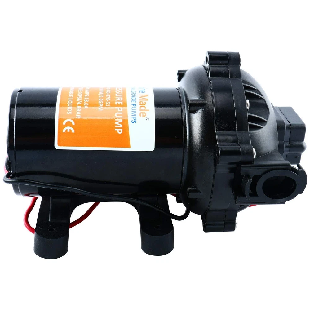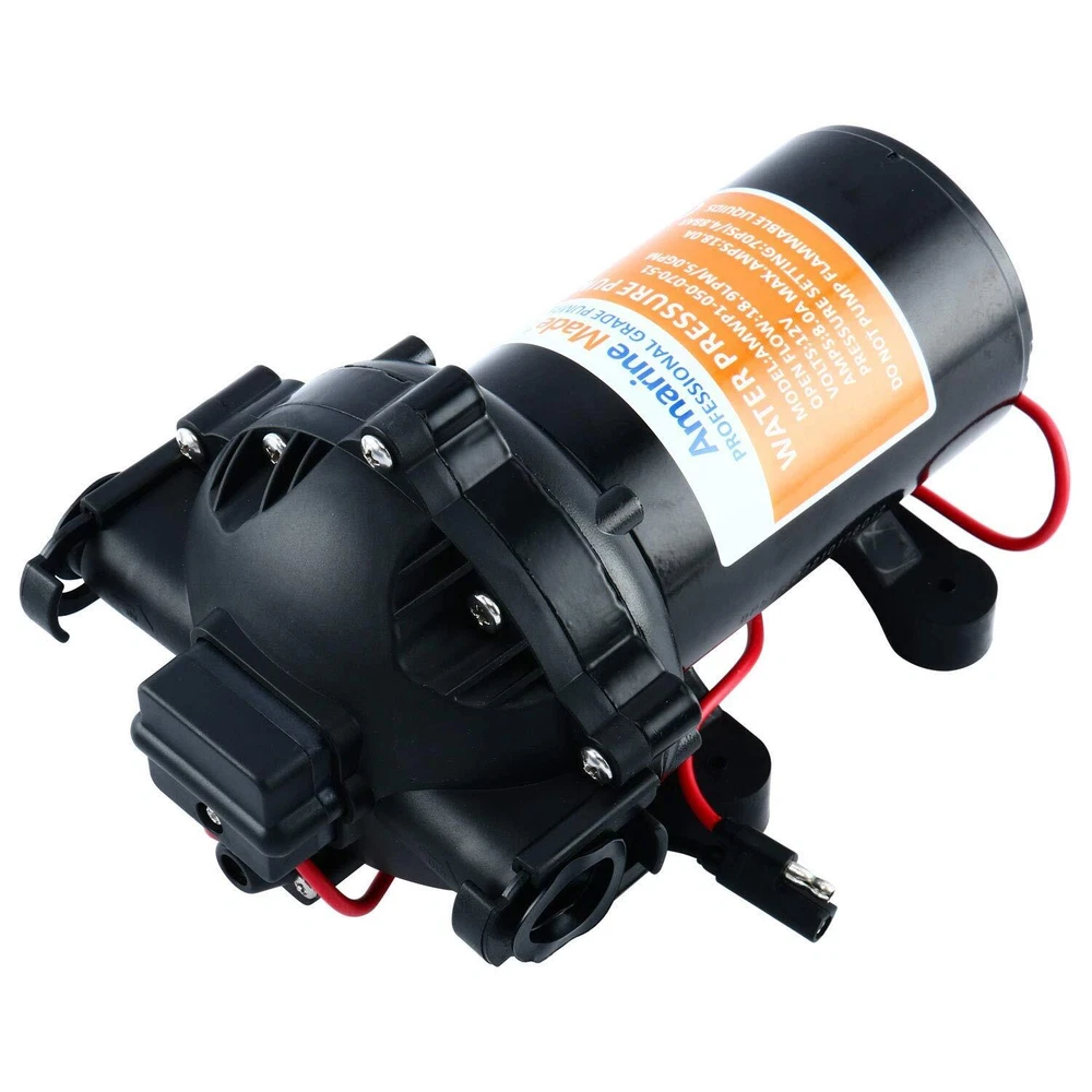 Product Description Amarine Made 70 PSI Washdown Deck Wash Pump KIT 12v 5.0 GPM for Caravan Rv Boat Marine Yacht Technical Specifications Voltage: 12V DC Flow capacity: 18.9 Litres per minute (5.0 Gallons per minute) Water pressure: 70 PSI (4.88 bar) Hose Outlets: Suits 12mm (1/2") diam. hose ,1/2"-14 MNPT Twin core wire Current Draw: 18.0 Amp (max. 20 Amp) Dimensions: Length 221mm x Width 146mm x Height 132mm Approvals: CE Product Features * Complete washdown pump kit with spray nozzle and coiled hose; * Powerful 5-chamber positive displacement diaphragm pump, for smooth and quiet flow; * Self-priming 12V pump with automatic pressure switch control - automatically turns on and off as you turn nozzle on and off; * 18.9 Litres per minute (5.0 GPM) capacity flow, and high 70 PSI pressure; * Professional grade pump - Ideal for cleaning boats, fish boxes, anchor wells, dinghies and caravans. Product Descriptions * Multi-step corrosion protection and seamless motor body for enhanced protection. * For marine, RV, and recreational deck wash applications Suitable use with for fresh water or saltwater Designed for intermittent use only. * Duty cycle: 30 mins; Heavy duty washdown pump Trigger nozzle with quick connect Quick connect adaptor UV-protected 7.5M (25') coiled hose. * Rubber mounting feet for corrosion protection and noise reduction Santorprene diaphragm - Can run dry without damage. * Thermal overload and ignition protection Easy connecting system. Solid, well sealed gaskets and wires with about 5ga with inline fuse. The pump housing is not that cheap plastic that cracks after 1 year but more like the teflon style that is very durable.The hose and nozzle are what you'd expect, will last a few years if kept out of the sun. On Aug 5, 2024 at 05:35:46 PDT, seller added the following information: Most People Choose 760GPH 12V Marine Auto Submersible Boat Bilge Water Pump Built in Float Switch 19.99 USD Free shipping 12V 35 PSI Water Pressure Diaphragm Pump Self Priming Pump for Caravan RV Boat 21.99 USD Free shipping 1100 GPH 12V Automatic Submersible Bilge Water Pump Auto Float Switch for Boat 23.99 USD Free shipping 0.75L 125 PSI Pre-Pressurized Accumulator Tank Pressure Water Pump for Boat RV 34.64 USD Free shipping 12V 760GPH Automatic Submersible Boat Bilge Water Pump with Auto Float Switch 19.99 USD Free shipping Amarine Made 12V 3700GPH Boat Marine Plumbing Electric Submersible Bilge Pump 63.99 USD Free shipping 12V 1500GPH Boat Bilge Pump Plumbing Electric Pump w Float Switch 29mm ID Hose 39.99 USD Free shipping 12V 1100gph Automatic Submersible Boat Bilge Water Pump w/Built-in Float Switch 26.99 USD Free shipping 12V 750GPH Automatic PUMP Submersible Boat Bilge Water Pump Builtin Float Switch 23.61 USD Free shipping Marine Portable Livewell Aeration Pump System Pump Aerator 350 GPH for Boats 32.89 USD Free shipping 12V 1.2 GPM 35 PSI Diaphragm Water Pressure Pump Self Priming Boat Marine RV 27.99 USD Free shipping 12V 1100GPH Electric Marine Submersible Bilge Water Pump for 29MM ID Hose 14.99 USD Free shipping