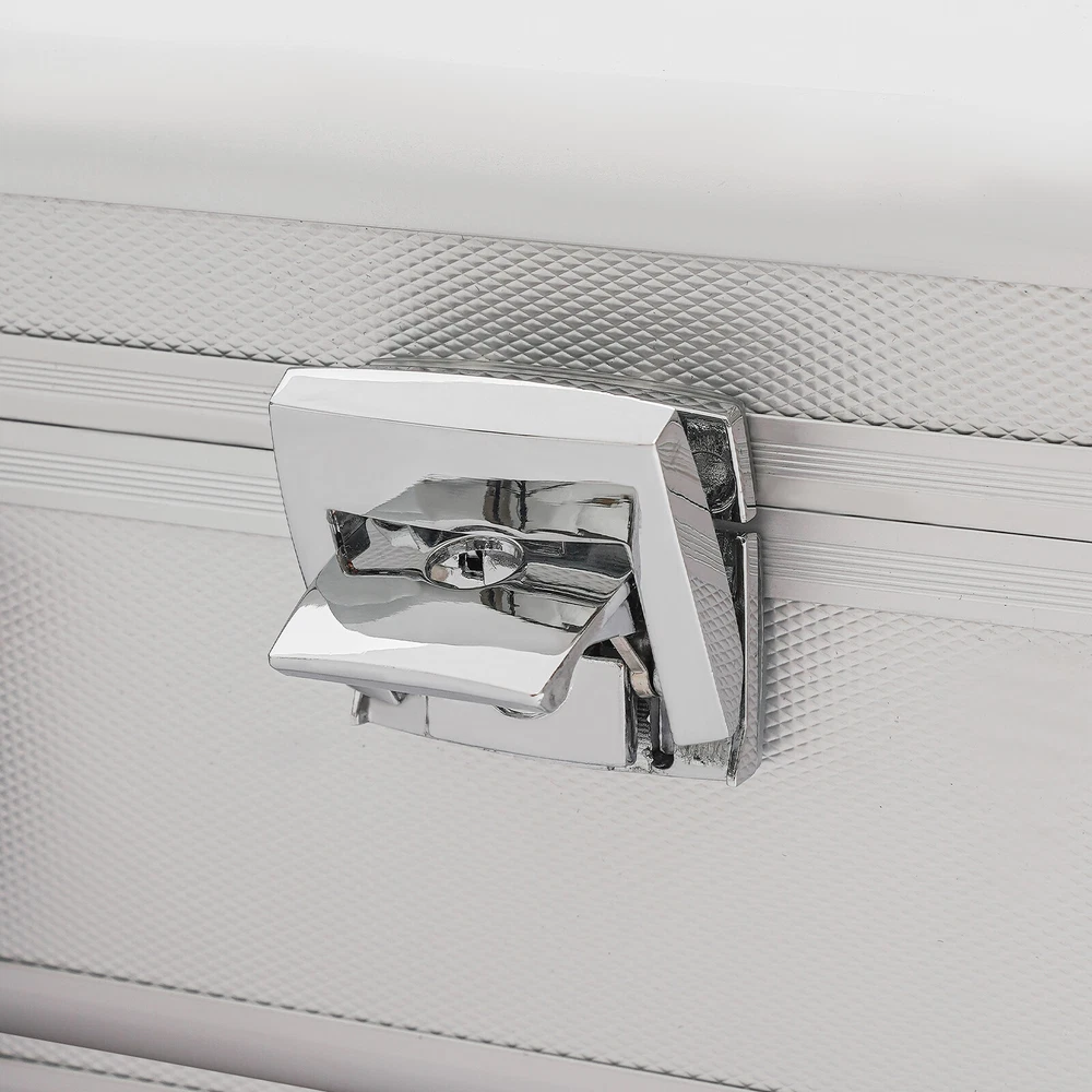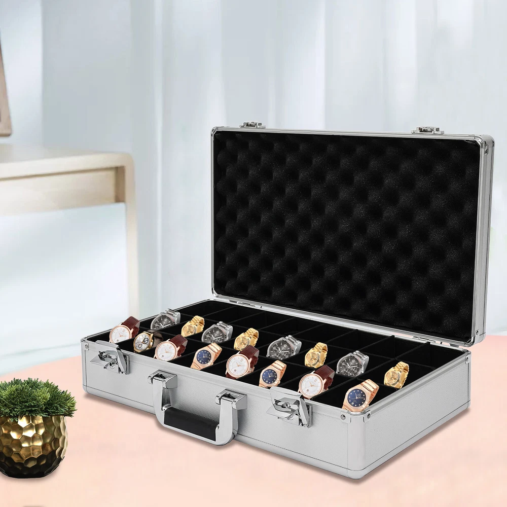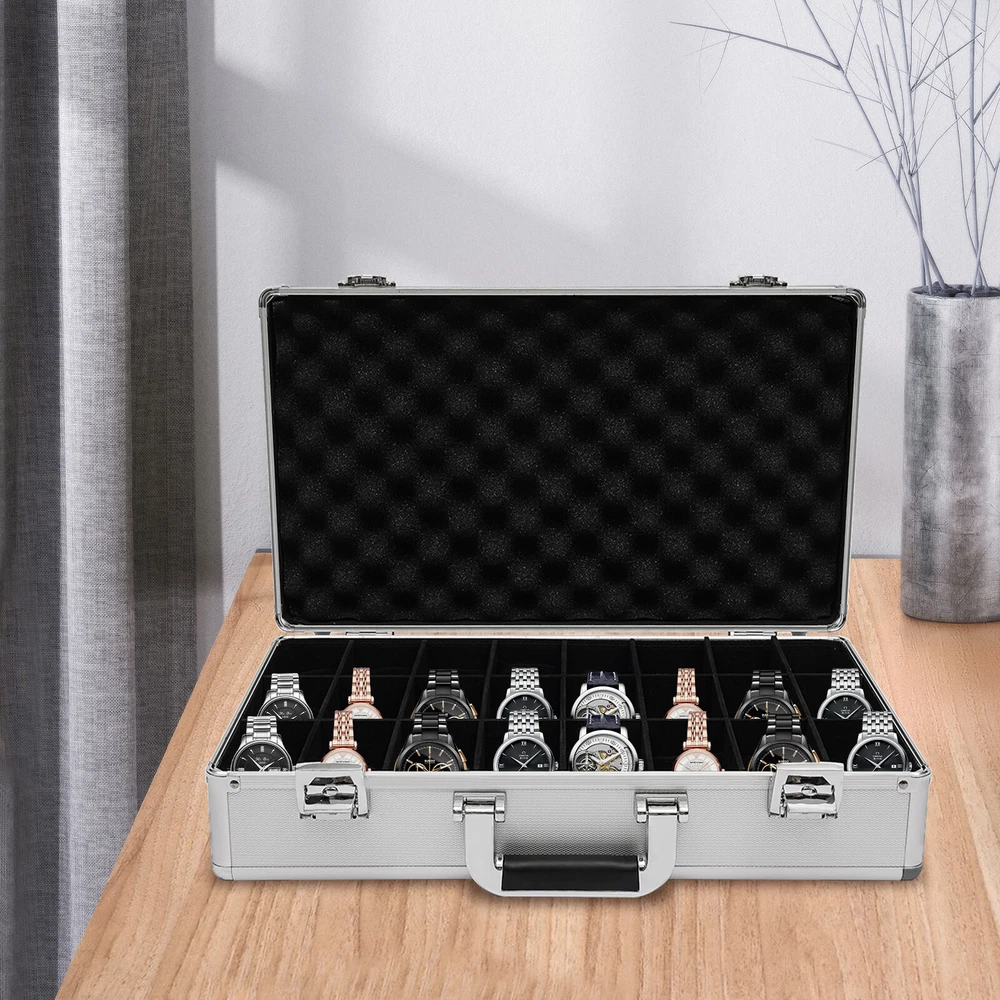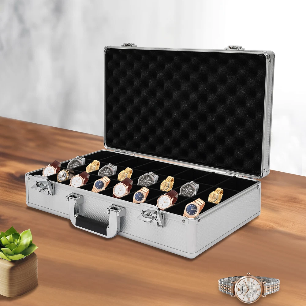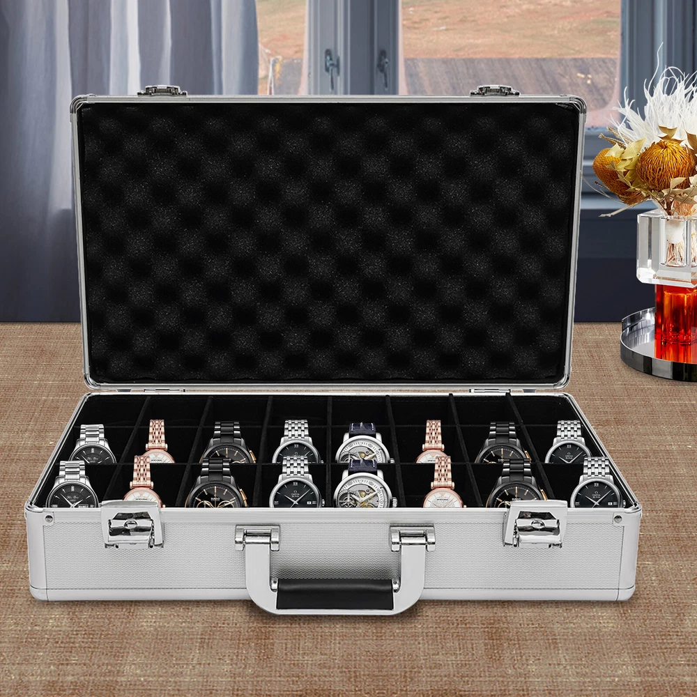 Specification Color: Silver Type: Watch Storage Case Shape: Rectangular Material: Aluminum, ABS, Plastic, Wooden Board, Sponge Process: Veneer Number of Grids: 24 Each Grid Size(L*W): 8.5*4cm/ 3.3*1.6inch Product Size: 47.5*28*8cm/ 18.7*11*3inch Package Size: 50.5*32.5*12cm/ 19.88*12.8*4.74inch Net Weight: 1.8kg/ 3.97lbs Gross Weight: 2.5kg/ 5.51lbs Package Included 1* 24-Grid Watch Case 2*Keys Watch Case Jewelry 24 Grid Aluminum Alloy Box Watch Case Briefcase Design Gift Specification Color: Silver Type: Watch Storage Case Shape: Rectangular Material: Aluminum, ABS, Plastic, Wooden Board, Sponge Process: Veneer Number of Grids: 24 Each Grid Size(L*W): 8.5*4cm/ 3.3*1.6inch Product Size: 47.5*28*8cm/ 18.7*11*3inch Package Size: 50.5*32.5*12cm/ 19.88*12.8*4.74inch Net Weight: 1.8kg/ 3.97lbs Gross Weight: 2.5kg/ 5.51lbs Package Included 1* 24-Grid Watch Case 2*Keys Specification Color: Silver Type: Watch Storage Case Shape: Rectangular Material: Aluminum, ABS, Plastic, Wooden Board, Sponge Process: Veneer Number of Grids: 24 Each Grid Size(L*W): 8.5*4cm/ 3.3*1.6inch Product Size: 47.5*28*8cm/ 18.7*11*3inch Package Size: 50.5*32.5*12cm/ 19.88*12.8*4.74inch Net Weight: 1.8kg/ 3.97lbs Gross Weight: 2.5kg/ 5.51lbs Description This watch case is made of high-quality materials, which are wear-resistant and sturdy. The large capacity of 24 compartments allows you to easily store various watches. It can keep your watches neatly stored in this beautiful storage case, protecting them from dust, scratches, and falling injuries! Key Features Build to Last: The high-quality aluminum frame, ABS panel, plastic handle, and wooden partition give it strong, wear-resistant, and waterproof features, allowing you to store the watch in a box with confidence. Large Capacity: The 24 compartments are of moderate size (3.3*1.6 inches) and are suitable for storing watches of various sizes, providing you with ample space to store your watches. High Safety: It is equipped with two keylocks, which can effectively protect your precious watch from loss, giving you strong security and reliability. Easy to Carry: The lightweight weight of 3.97 lbs and the convenient handle on the watch case make it easy for you to carry around. Convenient to Clean: The detachable watch pillow makes it easy for you to clean it. Thoughtful Design: The built-in soft watch pillow can protect your watch from damage. The wooden partition divides it into 24 compartments for easy access, sorting and storage of precious watches. Strict Package: The dual packaging of bubble bags and cardboard boxes can effectively protect the product from damage during transportation as much as possible. Ideal Gift: It is an ideal gift for family, colleagues, and friends on birthdays, Valentine's Day, weddings, Christmas, and New Year. Exquisite Appearance: The silver appearance, combined with the classic black interior, harmonizes with your various watches, showcasing an elegant temperament. Customer Service: We aim to provide quality products and services. If you have any problems, please free to contact us. We will reply and solve the problem for you as soon as possible. Details Anti-slip Rubber Mat: The anti-slip rubber mat at the bottom and back can help you place the watch case smoothly and firmly, preventing wear and tear on the casing. Plastic Handle: The plastic portable handle makes it convenient for you to carry the watch case. Application It can accommodate normal-sized men's and ladies' watches and can be used for displaying and protecting your precious watches. Notes Please note that watches are not included. Please allow the slight color difference caused by the shooting light and 1-3 cm error due to manual measurement, and make sure you do not mind before ordering. Payment Delivery details Terms of sales About us Contact us Payment We accept ebay payment 。 Fees such as import duties, taxes are not included in the item price or shipping costs. These charges are the buyer's responsibility. Delivery details Shipping: 2-9 working days to: USA Terms of sales We maintain high standards of excellence and strive for hundred percent customer satisfaction. Feedback is very important to us. We hope that you contact us immediately before you give neutral or negative feedback, so that we can address your concerns. It is impossible to address issues if we do not know about them! About us Your satis faction is our ultimate goal. We work hard to earn your trust and future business. Our certified technicians have tested each item before shipping. The unit comes with 1 year limited warranty on all manufacturing defects. a) If you receive a defective item, you may return it or ask for a discount. Please contact us within 14 days after you receive the package. b) What you returned must be intact and in its original packaging as re? u. Customer is responsible for shipping costs of the returned item. c) We will cover the cost of shipping back t with the shipping rate indicated in the registration page. We will send you a new unit or refund the full payment you paid. Thank you. Contact us Business Hour Business Hour: Monday To Friday: 8:30 AM to 5:00 PM (Beijing China time) Due to time zones, our reply to your questions may not be immediately. But within above working time, we will reply your email within 24 hours. If it's non-workdays, please kindly be patient and wait till Monday. Please contact us with ebay message. Please feel free to contact us if you have any questions. Monday To Friday: 8:30 AM to 5:00 PM (Beijing China time) Due to time zones, our reply to your questions may not be immediately. But within above working time, we will reply your email within 24 hours. If it's non-workdays, please kindly be patient and wait till Monday. Please contact us with ebay message. Please feel free to contact us if you have any questions. Brand Unbranded Type Watch Case Color Silver Material Material: Aluminum, ABS, Plastic, Wooden Board, Sponge Number of Grids: 24 Product Si