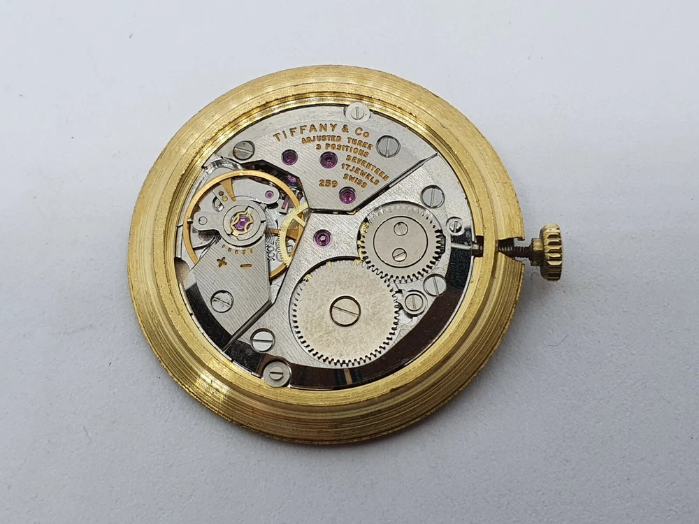 Vintage watch movement TIFFANY & CO Movement made by Peseux cal 7001 movement winds and runs service recommended due its age Aged dial some rust on hand / possible hour wheel or some parts on dial side Comes as pictured