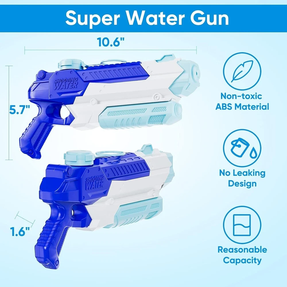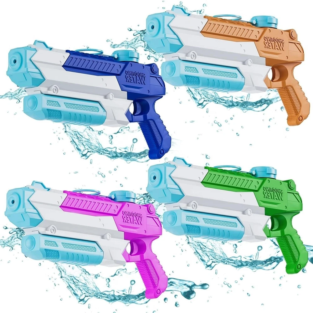 Water Gun, Water Guns for Adults & Kids, 4 PCS 300CC Long Range High Capacity for Water Guns, Water Toys, Water Blaster, Swimming Pool Beach Outdoor Summer Fun Party Games, Gifts for Boys and Girls Product Details Color: Colorful1 Brand: KEUCL MPN: 992 UPC: 709084183950 EAN: 0709084183950 Product Dimensions: 10.6 x 5.7 x 1.6 inches Item Weight: 1.28 pounds Country of Origin: China Manufacturer recommended age: 3 years and up Manufacturer: KEUCL Super Value Water Gun Set: With 4 pack water guns you can promote family interaction and communication ,enjoy parent-child time. Item Measures 10.6'' by 5.7''. Hold up to 300cc Water. Suitable for kid and adult. Tested for Safety and Durability. Meet US Toy Quality Standard. Easy & High Quality Water Gun Toy: The water gun is made of high quality ABS plastic and the sturdy construction ensures durability. In addition, our spray gun is lightweight, easy to grip for little kids to play with. Pushing and pulling is smooth and effortless, and the pump power design is more effortless to play. Kids Water Gun with Long Range: This water gun shoots range 22ft - 27ft. Large water inlet for faster filling of water. After filling with clean water, simply pump and shoot. The faster you pull, the farther the water will spray. Don't shoot eyes when use. Safe & Cool Design Water Toys: The material of the water gun is safe and non-toxic. Due to the smooth handle design, it won't hurt kids' hands. Use summer colors for a stylish look. Looks like a cartoon hero cosplay when kids play it. Kids would love it. Summer Gifts for Kids: Water guns are suitable as summer gifts for kids. Whether in your yard, swimming pool, beach sand water fighting or water party, water gun will create precious memories for kids and parents! Any questions, please let us know, we will help you solve the problem.