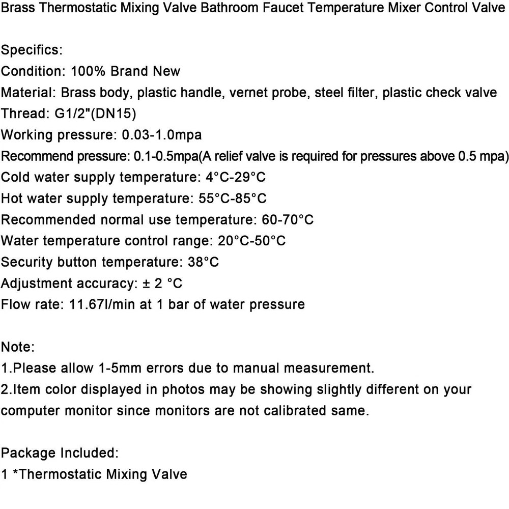 New Bottom Roller Fits Bobcat T190 T650 T320 T300H T200 T750 T300 T250H T550 245.87 USD Free shipping AFR-2000 1/4" Air Compressor Filter Water Separator Trap Tools W Regulator Gauge 14.79 USD Free shipping Replacement PrintHead Print Head For Canon PRO-100 PRO 100 QY6-0084 USA 107.79 USD Free shipping Folding Back Up Iron Sight Flip Up Front Rear Set Picatinny Rail KAC300 20.87 USD Free shipping 250W MSD 8R Lamp Sharpy Beam Moving Head Replacement Bulb Stage Show Lighting 33.79 USD Free shipping NEW 65W Laptop Car Charger Power Supply DC Adapter Universal for HP 19.5V 3.33A 19.87 USD Free shipping 1× RLEIL RL2-102 Waterproof IP65 Car Rocker Switch 4Pin 125/250VAC Green YU 11.09 USD 11.67 USD Free shipping 5% off DC Brushless Cooling PC Computer Fan 12V 24V 8025s 80x80x25mm 0.15A 2 Pin US 10.79 USD Free shipping 6 Way/12 Way 150A Rated Bus Bar Power Distribution Terminal Block For Car Marine 11.87 USD Free shipping Heavy Duty Pan Seal Kit Model CBK-100 (7MKIT-HD) for Cuisinart Bread Maker 18.79 USD Free shipping Widen Patient Chair Hydraulic Transferred Lift Wheelchair 180°Split Seat 799.99 USD Free shipping M365 Electric Scooter Accessories Adjustable Multifunctional Portable Strap 12.79 USD Free shipping A Fantastic Shop Send us a message Our Store Seller Profile Feedbacks Save this seller Contact Water Temperature Control Brass G1/2" Thermostatic Mixing Valve Home Improvement Brass Thermostatic Mixing Valve Bathroom Faucet Temperature Mixer Control Valve Feature: 1: Using solid brass valve core, durable and not easy to rust. 2: There is a filter screen at the connection of cold and hot water to protect the water from other impurities. 3: Wall-mounted bathtub thermostatic mixing valve is easy to install and suitable for most water heaters. 4: Easy to control the amount of hot and cold water, adjust the water temperature as needed. 5: Built-in temperature control safety device, automatically shut off hot water when there is no cold water, to protect scalds. Specifics: Condition: 100% Brand New Material: Brass body, plastic handle, vernet probe, steel filter, plastic check valve Thread: G1/2"(DN15) Working pressure: 0.03-1.0mpa Recommend pressure: 0.1-0.5mpa(A relief valve is required for pressures above 0.5 mpa) Cold water supply temperature: 4°C-29°C Hot water supply temperature: 55°C-85°C Recommended normal use temperature: 60-70°C Water temperature control range: 20°C-50°C Security button temperature: 38°C Adjustment accuracy: ± 2 °C Flow rate: 11.67l/min at 1 bar of water pressure Note: 1.Please allow 1-5mm errors due to manual measurement. 2.Item color displayed in photos may be showing slightly different on your computer monitor since monitors are not calibrated same. Package Included: 1 *Thermostatic Mixing Valve About US About Our Items We strive to describe all items accurately and thoroughly, with the utmost care and attention to detail. However, to ensure a mutually satisfactory transaction, we kindly ask for your assistance in thoroughly reviewing the item description and photos, and addressing any questions before placing a bid. Customer Satisfaction We stand behind our commitment with exceptional service, a 100% money-back guarantee, and a dedication to customer satisfaction. I am readily available to address any inquiries or concerns you may have, both before and after your purchase. Our aim is to ensure your shopping experience is enjoyable and that you're delighted with your purchase. Feedback Your feedback is crucial to our business's success. If you're satisfied with your purchase and the service you received, we would greatly appreciate your positive feedback, along with an overall Detailed Selling Rating (DSR) of 5. Please take a moment to leave us positive feedback. Our eBay account is set up to automatically reciprocate positive feedback once yours is received. If you're considering leaving neutral/negative feedback or opening an eBay/PayPal case, we encourage you to reach out to us immediately. We're committed to resolving any issues to the best of our ability. Shipping Parcel will be shipped using Standard shipping method. For security purposes, items will be shipped exclusively to the confirmed address on Paypal. Please ensure your Shipping address is up to date before proceeding with payment. Estimated delivery time within the United States ranges from 3 to 10 business days, depending on your location. Returns We accept returns within 60 days from the date the buyer receives the item. If the item is found to be defective upon receipt, the customer has up to 30 days from the date of receipt to request an exchange for a new item or a refund. For returns due to a change of mind, we accept items in their original selling condition. However, if the package has been opened due to a mistaken order, it does not qualify for our return policy. Please note that the buyer is responsible for covering the cost of return postage. If you encounter any issues, please reach out to us via eBay message, and we'll respond within 24 hours. 1/2" Brass Swing Check Valve NPT Threaded Plumbing Fitting 12.99 USD Free shipping 3-Way Ball Valve Female L Port Lever Handle 3/4" NPT Made Of Forged Brass 31.49 USD Free shipping 12V 6675559 Solenoid Valve Coil For Bobcat S300 S330 S510 S530 S550 T590 T650 19.79 USD Free shipping DN20 3/4" NPT In-Line Check Valve Brass Spring Loaded Inline 200PSI 12.87 USD Free shipping 1/2 inch Thread Float Ball Valve Floating Ballcock Stainless Steel Fittings 17.79 USD Free shipping 3/4" Male Thread Float Ball Valve Floating Ball Stainless Steel Water Sensor 21.83 USD Free shipping Pneumatic Electric Solenoid Air Valve 4V410-15 AC 220V 2 Position 5 Way PT 1/2" 35.79 USD Free shipping 4V110-06 5 Way 2 Position PT1/8" Dc 24V Pneumatic Electric Solenoid Air Valve WE 17.79 USD Free shipping 3-Way Ball Valve Female L Port Lever Handle 1" NPT Made Of Forged Brass 40.99 USD Free shipping Old Model 24V Solenoid Valve Coil Fits Volvo Ec140 Ec160 Ec210 Ec24
