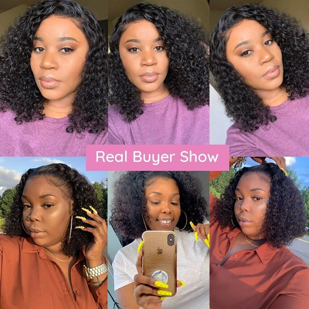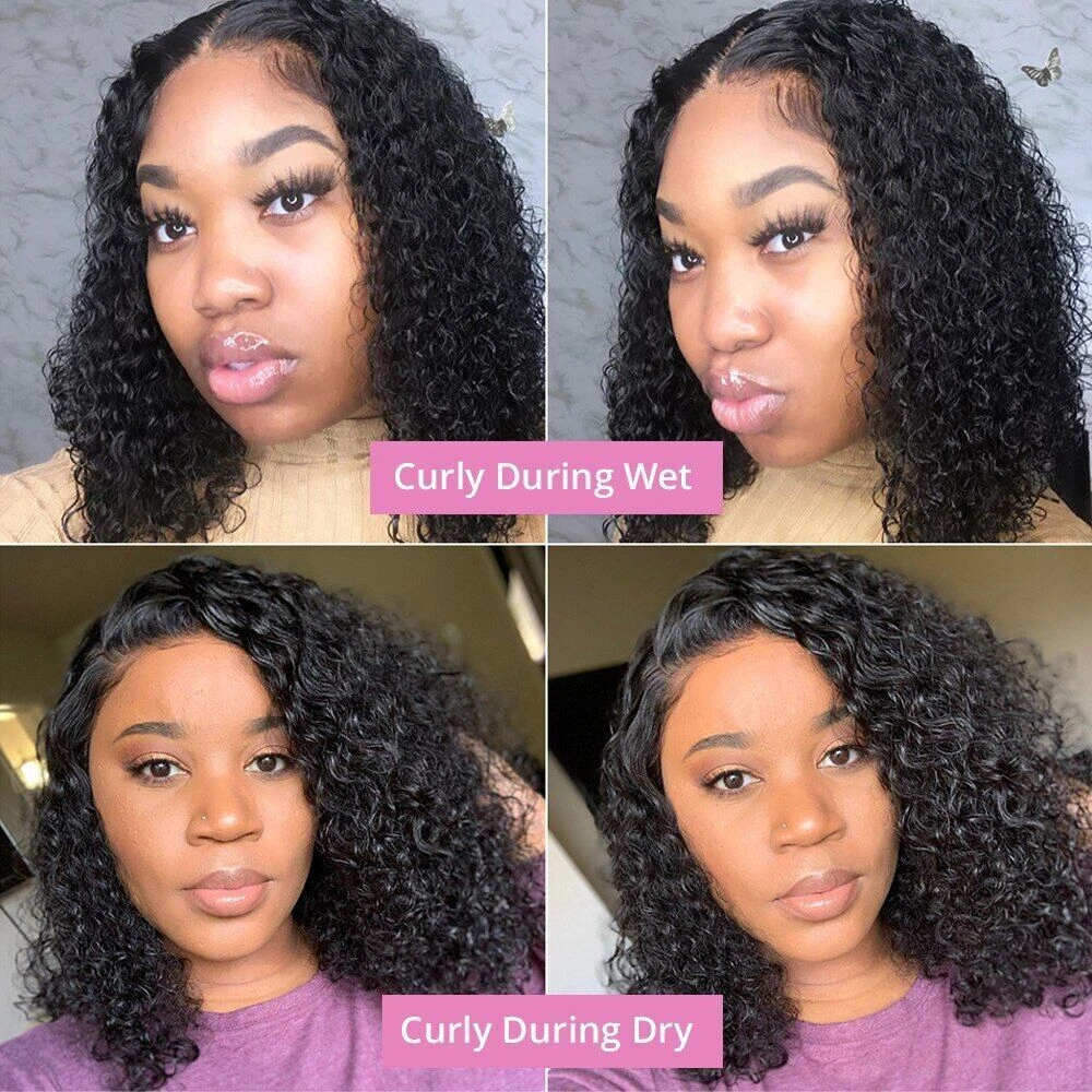 Water Wave Lace Front Human Hair Wig Transparent Short Bob T Part Lace Wig Women
