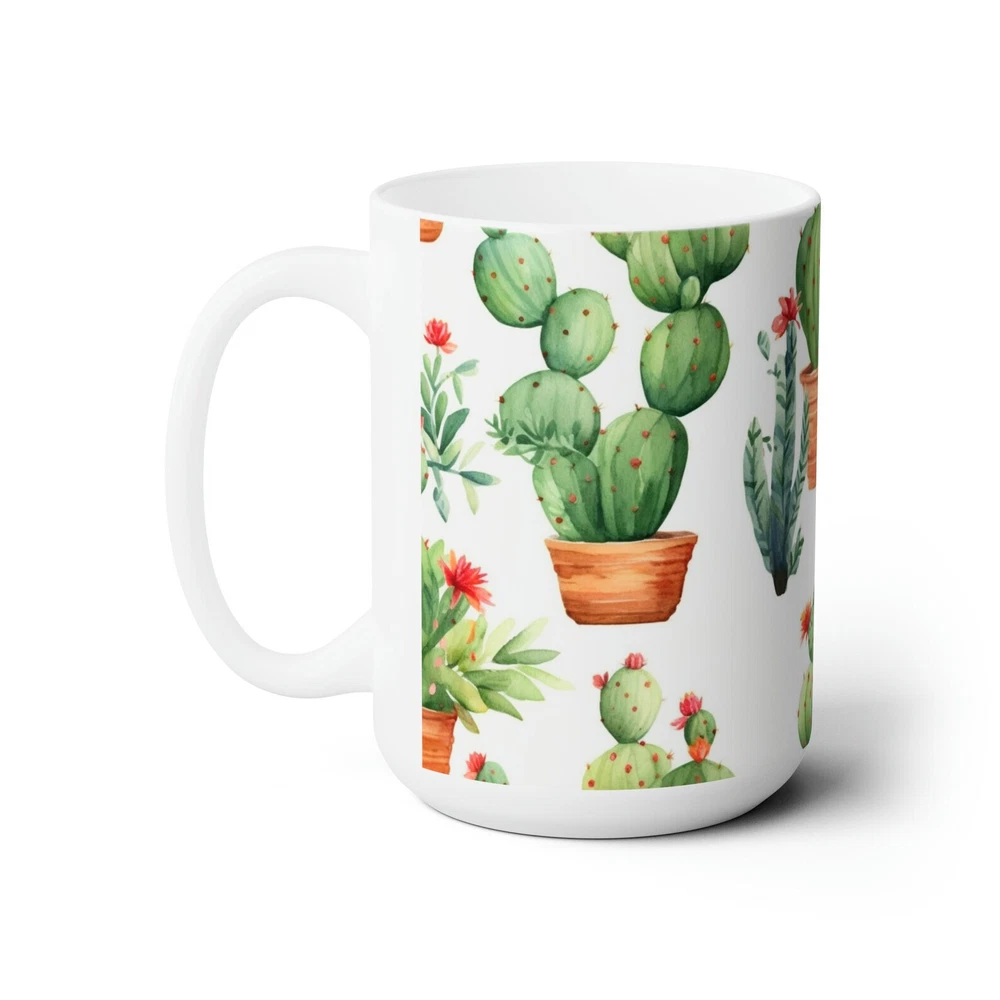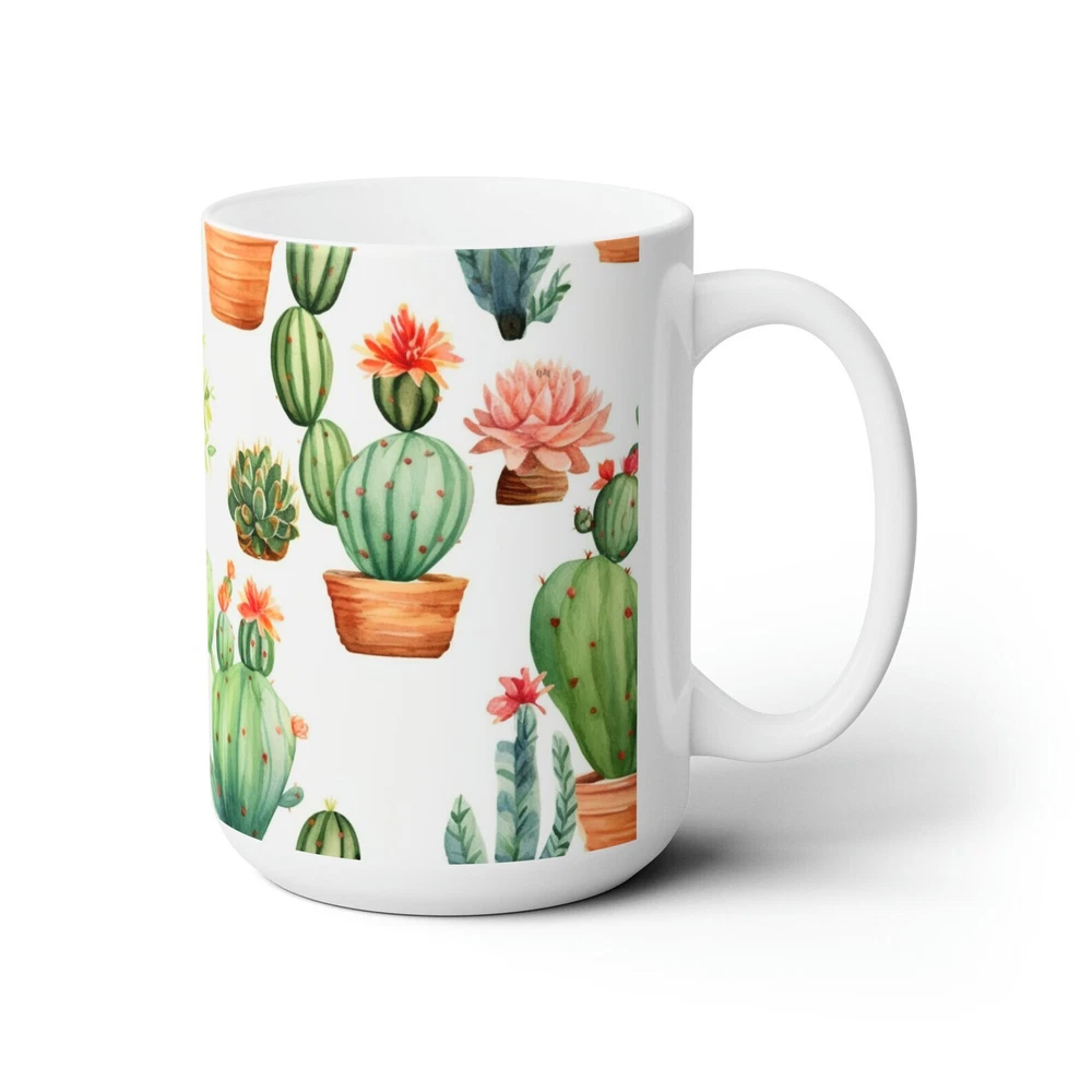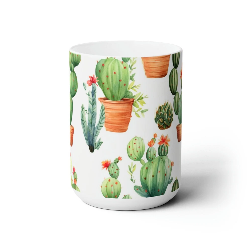 Watercolor Cactus Ceramic Mug 15oz Product Details.. This high quality 11oz. ceramic white mug has a premium hard coat that provides crisp and vibrant color reproduction sure to last for years. Perfect for all hot & cold beverages. The highest quality printing possible is used. It will never fade no matter how many times you wash it. Material: 100% Ceramic. Print both sides. Dishwasher and Microwave Safe. High Gloss + Premium White Finish. Printed in the U.S.A. Personalized & Custom. We support personalized and custom mug to add custom, when placing an order, you can add notes to the "order note" in shipping address section. Also you can contact us directly via message. Shipping Info. Ready to ship in 1 to 2 business days, All products are made-to-order and proudly printed in the United States. Shipped by USPS and DHL, You will receive your order in 5-7 days. Replace & Refund. All products are defective during shipping broken, chipped will be replaced free of charge. You are not satisfied with the product, we will refund 100% money to you. If any other issues arise, please do not hesitate to message, we would be more than happy to assist you.