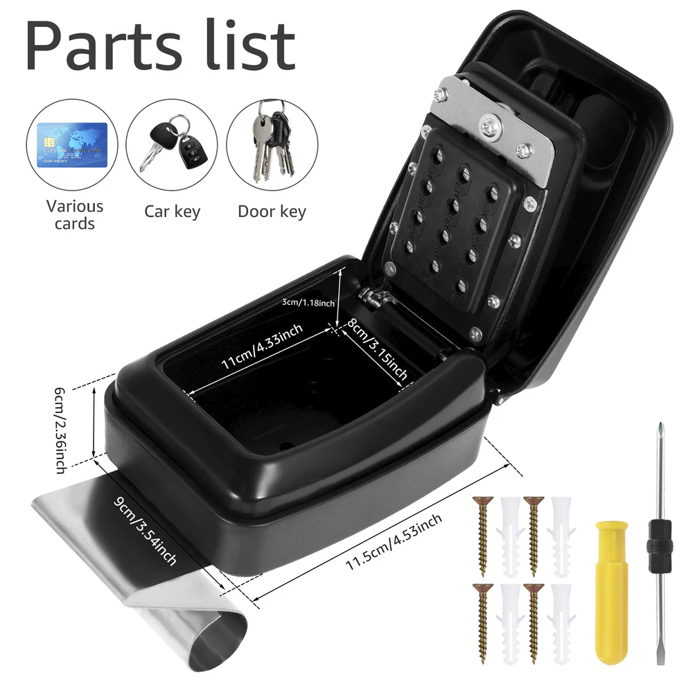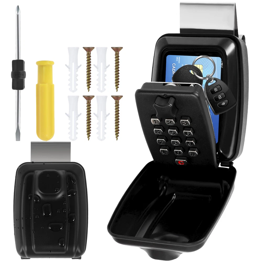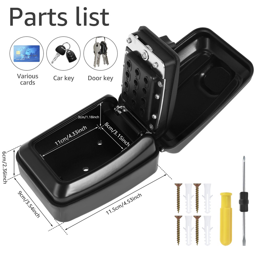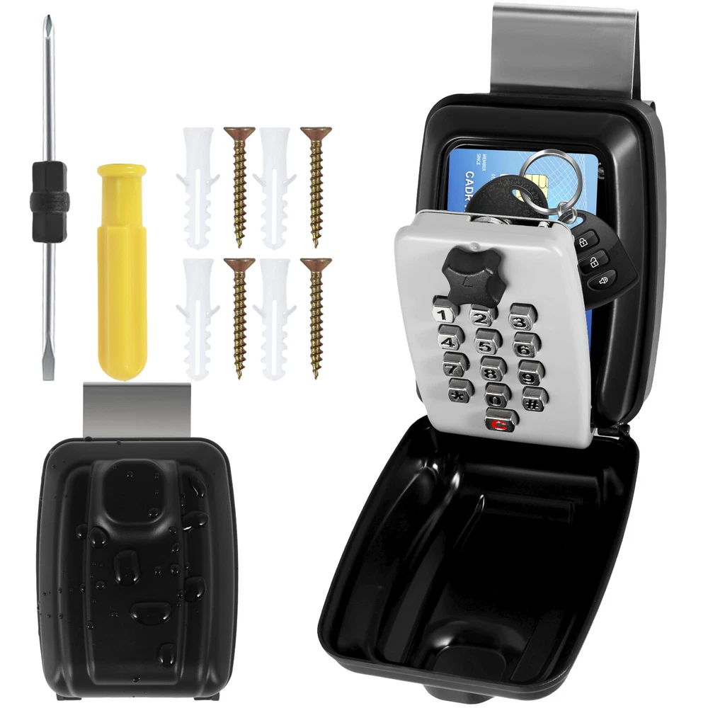 [---Welcome TO Our Store! Happy Shopping! Happy Life---] Highlight description: [Weather-Resistant Material] The password key lock box is made of rust-proof aluminum and zinc alloy, ensuring sturdy and durable enough to withstand different forms of tampering such as knocking, sawing and prying. It is waterproof and rust-proof, which can extend outdoor use. The weather-resistant material is effective to withstand weather conditions like sunlight, rain, and snow. [Resettable Code Design] Our wall mounted key lock box is designed with 12-digit combination system to improve security, and you can set a unique password. After each password reset, you must securely photograph or record your code to prevent forgetting it. The waterproof lock box comes with detailed instruction to guide you through every step, so you can reset your access code promptly when needed. [Easy to Install] The package includes all necessary mounting accessories, including 4 screws, 4 nylon expansion bolts, and a double-ended screwdriver for easy installation. Pre-drilled holes make securing keybox an easy task. The user-friendly installation process ensures easy access to your key storage unit after entering the correct code. [Save Time and Effort] This product can greatly reduce time and hassle of finding your keys. Just enter the correct password or password combination to quickly and easily retrieve the required key, saving valuable time and effort. [Wide Application] This key safe can hold at least 5 home or car keys. It provides additional storage capacity for items like access cards, credit cards, and USB flash drives. It is suitable for home, vehicle, rental property or commercial space. It provides temporary access for family, friends, visitors, maintenance staff and tenants, ideal solution for keyless entry. Detailed description: Product Name: Password Key Lock Box Material: Aluminum and Zinc Alloy Size: 4.53×3.54×2.36inch (11.5×9×6cm) Internal size: 4.33×3.15×1.18inch (11×8×3cm) Color (Optional): Black, Silver Style (Optional): Regular Style, Car Window Style Notes: 1.There may be slight differences between the picture and the actual color of the commodity. We will try our best to show you the exact color. 2.Please allow slight dimension difference due to manual measurement. Parts List: 1×Lock Box 1×Screwdriver 1×Screw Pack OR 1×Lock Box 1×Screwdriver 1×Screw Pack 1×Stainless Steel Pendant 1×Anti-Scratch Glass Sponge Pad We accept Payoneer/Mastercard/VISA/Google Pay/American Express etc. Immediate payment is needed, so that we can finish your orders, then dispatch and post them in time. We really appreciate your business with us, and hope to keep it lasting. Orders will be processed and dispatched within 1-5 working daysafter payment received from Monday to Friday. Saturday and Sunday orders will be posted in the following Monday. when items are in peak period, the time will be prolonged according to certain situations, which may beyond our control, but we are always ready to help you track the delivery info. Returns: 1.Defective goods must be returned within 30 days from the delivery date. The buyer is responsible for the return shipping fee. We will not reimburse the return shipping fee unless when we have shipped the wrong item. 2.We reserve the right to refuse any returns for our reasons. Contact Us: 1) We are committed to provide you with great service. If you are in any way dissatisfied with your purchase: Please DO NOT open eBay case immediately. Please DO NOT open PayPal Dispute immediately. Please DO NOT leave us a low score for DSR immediately. Please DO NOT leave us a neutral/negative feedback immediately. Always communicate first. Please contact us via eBay message. We will work with you to resolve any problem. 2) We always reply messages within 2 business days, please check your Spam Inbox or eBay Message Box if you do not receive a response within 2 business days. We are always making efforts to providing better products and service. if you feel satisfied with us, please leave us a 5-Star on the Detailed Seller Ratings.
