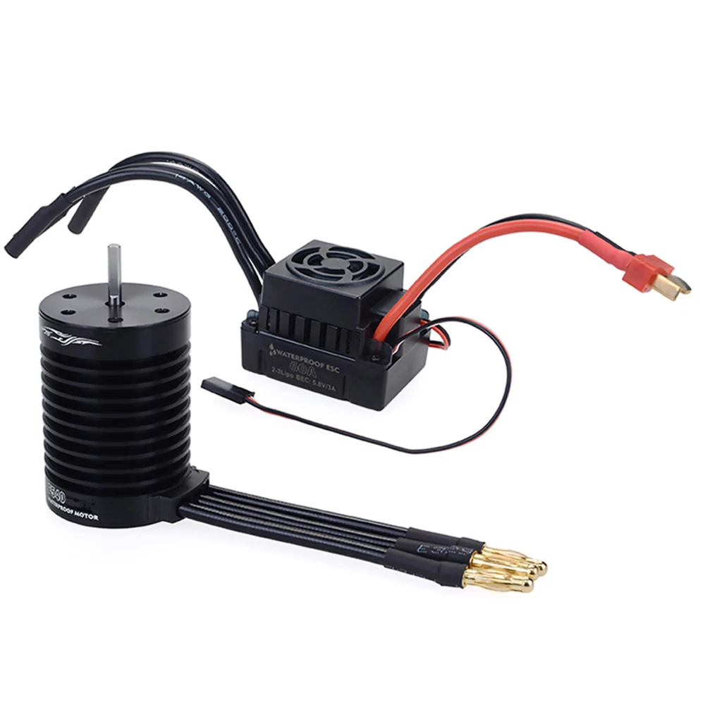 Product Description Features: 4 Poles 12 slots high-torque motor design, suitable for 1/10 1/12 scale RC car. High-purity copper windings maximize efficiency. Precision engineered for maximum energy conversion. Precision balanced rotor, smoothness for best reliability, and maximum RPM. CNC machined 6061 T6 billet aluminum heatsink can. ESC has enhanced throttle response, excellent acceleration, powerful interruptions, and super smooth and accurate throttle linearity. How To Use: Connect BEC wires with the receiver Connect motor wires with ESC Turn on the transmitter Connect the battery pack with ESC then switch on the ESC. When the connection of the motor and battery is finished, the motor emitsnBeep-Beepntone. When the throttle stick is in the neutral position, the motor re-emits nBeep-Beepntone. The ESC is workable. Specifications: F540 Motor Color: Black Power: 800W Max RPM: 50000 Material: Aluminum Length: 50mm Diameter: 36mm Shaft Length: 15mm Shaft Diameter: 3.175mm KV(RPM/V): 4370KV Voltage: <12V(4370KV) Current: 66A(4370KV) 60A ESC Material: Aluminum Continue Current: 60A Burst Current: 360A BEC Output: 5.8V/3A Power Supply Plugs: T plug male Battery: 2-3S Li-Po/4-9S Ni-Mh Ni-Cd Motor Plugs: 4mm banana plug female Plug Type: 4mm gold-plated banana plug Note: When the connection is completed, if the ESC keeps beeping, there are 2 solutions 1. Rebinding the controller and its receiver 2. Re just the neutral position of the controller throttle. This Motor & ESC combo will get better performance on a 2S lipo battery. We do not recommend using the 3S battery in case of security issues. Package Includes: 1 x F540 4370KV Motor 1 x Waterproof 60A Brushless ESC If you have any doubts or uncertainty about this item, contact us with no hesitation, we are always here and will solve your problems. Thanks and wish you a nice day! About Us We dedicated to provide excellent products and services for all customers on ebay. hope we all can have a nice experiences on eBay. Payment We accept all verified payment through PAYPAL payment. Shipping Usually, Item will be shipped within 1-2 working day after full payment is received. Normally, you will receive the item in 5-7 days. Please contact us if you don’t receive the items after 10 working days after the payment If you have any questions about shipping, please feel free to contact us. Returns Always believe we can solve problems by communication if it comes to any problems about products or any others. If it comes to a return, the products must be intact and as original when you received, and should be within 30 days after you received it. Contact Us Work time: 9:00 AM to 18:00 PM Beijing Time You can contact us at anytime you want, we will reply all messages at the first time. powered by