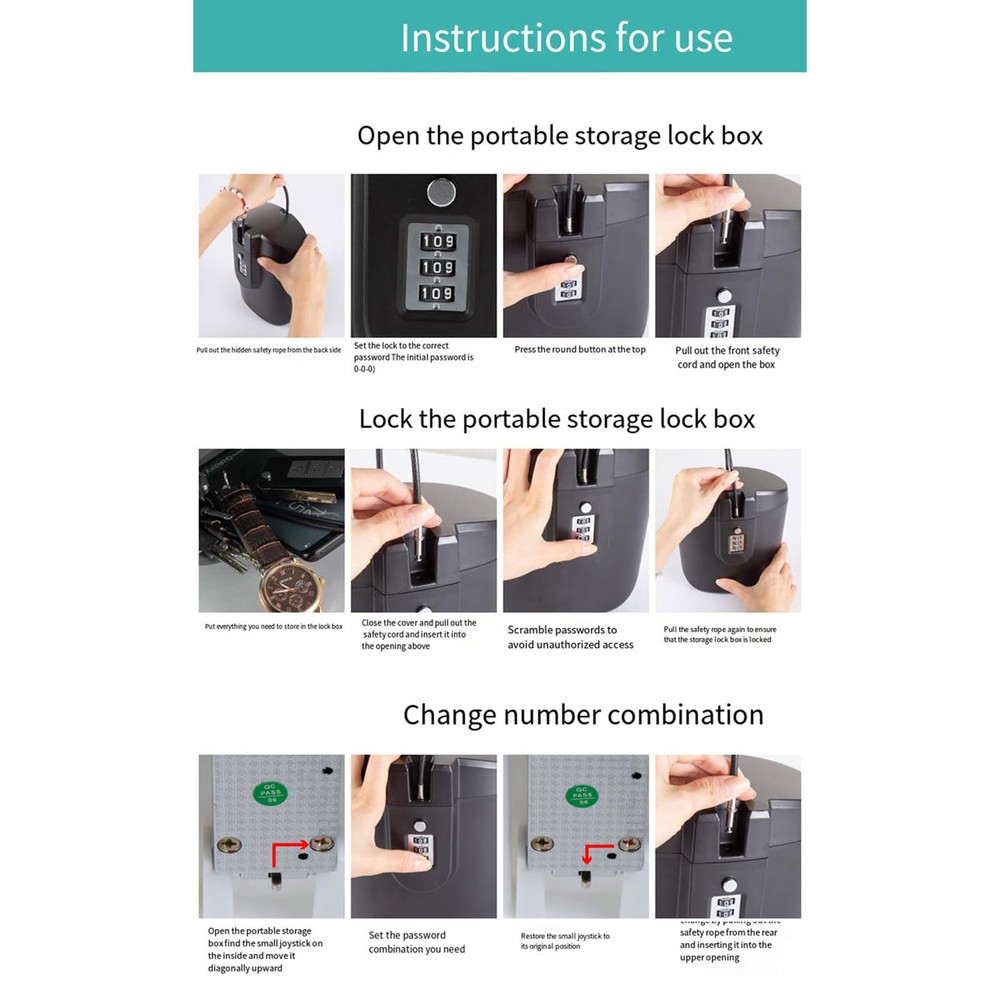 Beach Lock Box Waterproof Portable Key Lock Box With Combination Code For Travel Product Description Bullet Points: Safe and Handy: Its secure double locking system and 3-digit combination lock make it portable and convenient. Store jewelry, cash, smartphones, and more while you enjoy the sun and sand knowing your belongings are protected. Handy and reliable: Keep your belongings safe and dry at the beach or pool! Hang the lock box portable lock box for beach on any fixed object with the detachable wire rope. Unique Design: With a modern and sleek appearance, this beach lock box elevates your outdoor experience with a sense of fashion. Its distinctive look adds a touch of style, ensuring your valuables are always safe and secure. Portable Protection: With its professional-grade waterproof design this beach lock box is perfect for keeping your belongings safe and dry while at the beach. Made from lightweight and impact-resistant material, it's also easy to carry and durable to protect your valuables. Wide range of application: Protect your valuable items anywhere with this versatile beach lock box. Perfect for hotel stays, business use, travel, and of course, the beach. Keep your belongings safe and secure in any situation, no matter where you go. Protect your valuables while enjoy the beach with our beach lock boxes! Consisting of a 3-digit combination lock, these sleek and modern boxes can be attached to chairs, umbrellas, or other fixed objects. Drop and impact resistant, these are perfect for hotel guests looking for added security. Specification: Product material: ABS Product weight: about 500g Product capacity: 2 liters Product color: black, white, rose red, blue Lock rod thickness: 4.8mm Locking bar spacing: 410mm List portable lock box for beach x 1 (excluding other display items) Chinese and English manual x 1 Payment 1.PayPal is a preferred Payment method. 2.You can make a Credit payment via Paypal.Paypal will let you use MasterCard,Visa to pay. 3.Payment should be completed within 3 days after auction closed, or unpaid dispute will be filed for an closing auction.An unpaid case will be filled after 4 days. Delivery details 1. We ship to many countries. 2. Delivery Time: Ship from China via Speedpak to US (takes 8-12 days) Ship from China via others shipping method to other countries (takes 15-60 days) 3. If you want to choose another address, please leave us a message on ebay.Please check your shipping address carefully before checkout,it can't be changed if order completed. Seriously promise:Refund or resend will be offered if item still not arrive in 7-10 business days. Just send us an email,we will give you a satisfied solution as soon as possible. Return policy 1.All item comes with Basic 3 Months Sellers Warranty, if item defective in 3 months,We will offer replacement without extra charger (including shipping fee) After we receive the defective item. If item Defective after 3 Month, Buyers can still send it back, We will contact suppliers or Manufactory for Warranty. Buyers Might Need pay the Shipping fee For resend the replaced item. 2.If item DOA(Dead of Arrival), Buyers can return it in 30 Days, we will replace it with new item after we receive DOA item. Please Contact us Before you sent the item back. 3.All item can be returned for exchange only. The buyer has responsibility for all return shipping including DOA or defective return. About Feedback When you receive the item and satisfied with the product, please leave positive feedback and 5 scores DSR. We will leave a 5 Scores DSR feedback for you. If, for any reason you are not satisfied with your purchase, please contact via Ebay Message and we will do our best to resolve it. Please don't leave neutral or negative feedback without any communition with .