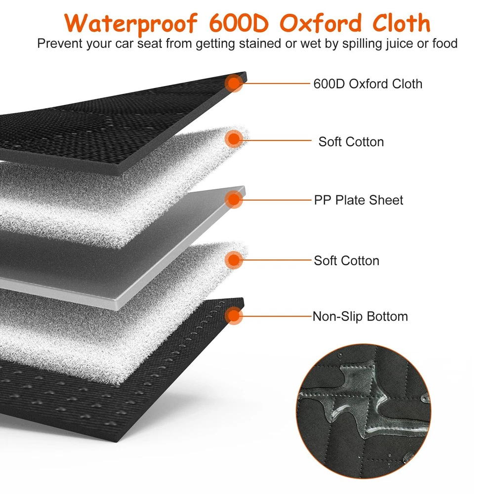Dog Car Back Seat Cover With Zipper Mesh Window Featured Item Product Detail Image Gallery Product Description Overview: Designed to keep debris, mud, liquids, pet hairs, and scratches away, our dog backseat protector ensures the tidiness of your car seat. Our dog car back seat cover is made from high-quality and waterproof 600D oxford fabric, providing excellent protection against spills and stains, it is also wear-resistant, won't easily get scratched by your dog's paws. The interior PP plate sheet adds durability and has a weight capacity of up to 440lbs, accommodating various sizes of furry friends. For your dog's safety, the bottom of the seat cover features an anti-slip design, ensuring stability and reducing sliding during the drive. Easy to clean by vacuum cleaning or wet cloth. Universally fit for most cars, trucks, SUVs etc.. Features: Keep Your Car Clean: Our dog car seat cover consists of 6 pieces of layers,providing full protection of your car seat and floors,keep debris,muds,liquid,pet hairs,scratches away. Also designed with considerate mesh window,allows your dog to clearly see you through the window,releasing mental stress caused by separation anxiety,and convenient storage bags are to hold pet snacks and supplies. Waterproof & Wear-Resistant Material: Constructed of heavy-duty 600D oxford fabric,great waterproof performance prevents your car seat from getting stained or wet by spilling juice or food. Durable material is wear-resistant,won’t be easily scratched by your dog’s paws. Sturdy & Anti-Slip Deign: Interior PP plate sheet is sturdy and anti-broken,up to 440lbs weight capacity can accommodate to various figures of your furry friends. Consider of your dog’s safety,the bottom of our dog car seat protector adopts with anti-slip,increasing the stability and reducing sliding around during driving. Fit For Most Cars: The unfold size of this backseat protector is 80.9x64.56in(L x W),perfectly fit for various vehicle types like all cars,SUVs,trucks etc.. Suitable for your beloved dogs,cats etc.. It provides a snug and secure fit,ensuring that your pet stays safe and comfortable throughout the ride. Before purchasing,please measure your rear seat dimensions to see if they match and the car seat should have a headrest bar. Easy To Install & Clean: Sturdy headrest straps and buckles make our dog back seat extender simple to install and remove. Just spread the dog car seat cover on your back seat and adjust the headrest strap to the proper length,and use the length adjustable seat belt to secure it to the car door. You can use damp cloth,vacuum cleaner,lint roller,hose nozzle to clean our waterproof car seat protector. Specifications: Brand: iMounTEK Product Type: Dog Car Seat Cover Material: 600D Oxford Cloth; PP Plate Sheet; Cotton Color: Black Weight Capacity: 200kg/440lbs Adjustable Dog Seat Belt Length: 59-103cm/23.22-40.55in Unfold Item Size: 205.5x164x0.5cm/80.9x64.56x0.19in Item Weight: 3026g/6.67lbs Package Size: 60*46*7cm/23.62*18.11*2.75in Package Weight: 3026g/6.67lbs Package Contents: 1x Dog Car Seat Cover 2x Door Seat Belts Terms & Conditions Thank you for your business !