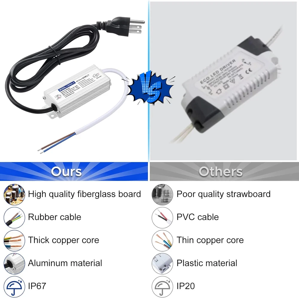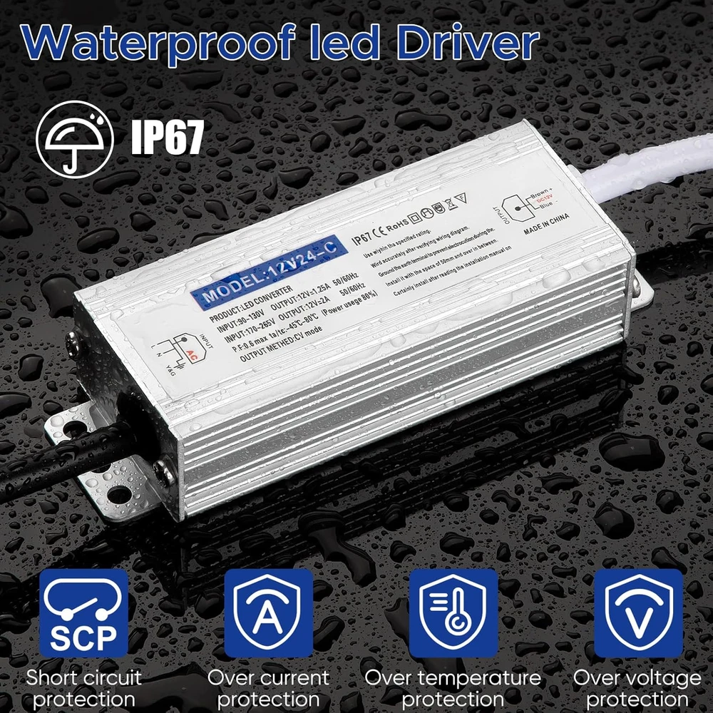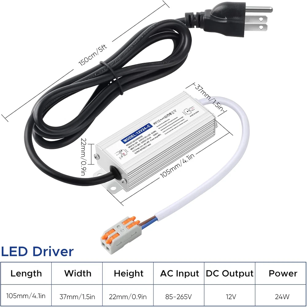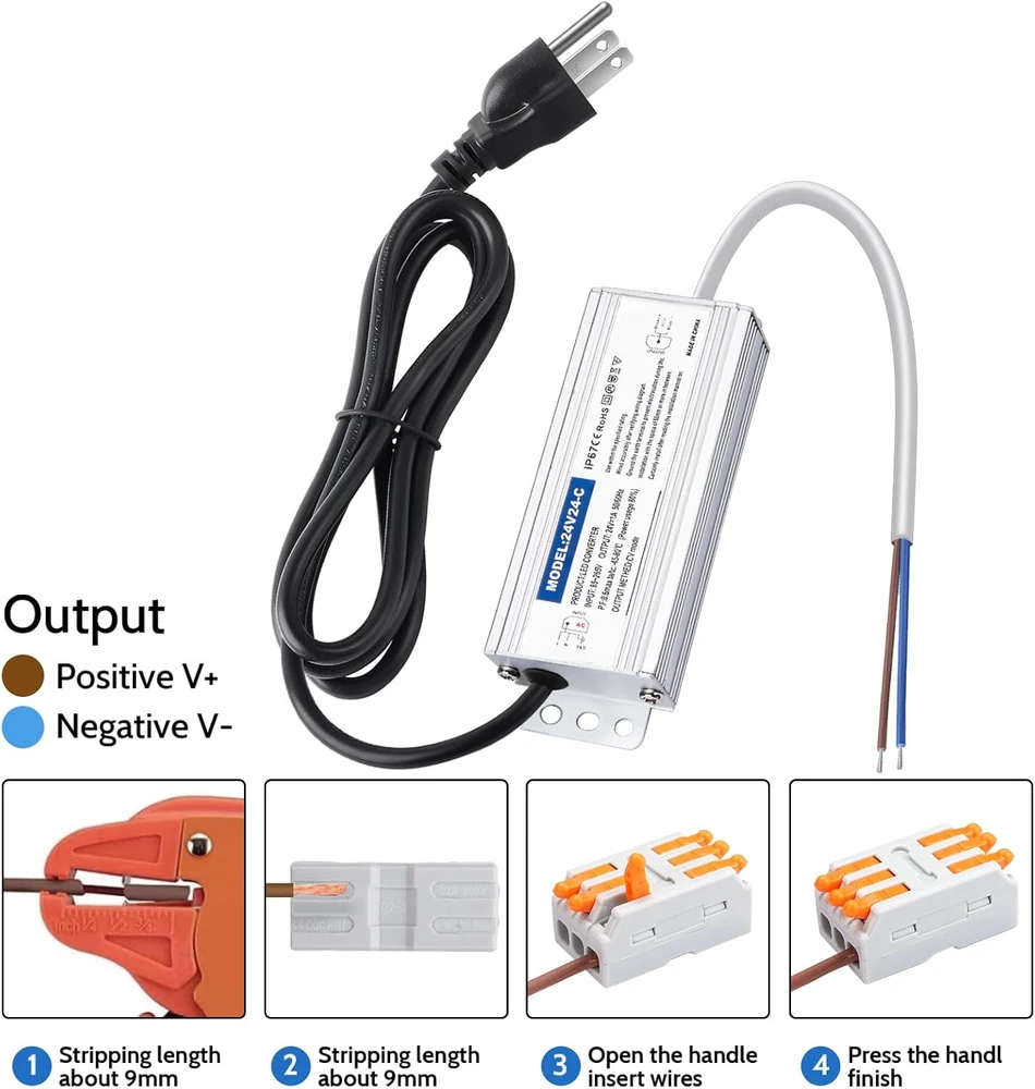 Store New Arrivals Add to Favorite View Feedback Contact Waterproof IP67 24V Power Supply 24W 1A 24V LED Driver 120V AC to 24V DC Description Item model number 24V24W Current Rating 1 Amps Power Source Corded Electric Minimum Frequency 50 Hz Product Dimensions 0.5"D x 1.9"W x 0.5"H Country of Origin China Item Weight 9.9 ounces Maximum Frequency 60 Hz Model 24V24W Specification Met Ip67 POWERFUL 24V OUTPUT: This LED driver with 24W and 1A output is the perfect 24V power supply solution for your LED lighting needs, ensuring consistent and reliable performance VERSATILE APPLICATIONS: With its non-dimmable feature and waterproof IP67 design, this 24V LED driver is ideal for a variety of LED lighting applications, including 24V LED strip lights, 24V LED light bulbs, and other 24V LED lighting fixtures WIDE INPUT RANGE: With an input range of 85-265V AC, this LED driver is a versatile and practical alternative for your lighting needs DURABLE AND SAFE: With an IP67 waterproof and IP67 Waterproof rating and over-current and over-voltage protection, this 24V DC low-voltage transformer is designed to be both durable and safe EASY TO INSTALL: With its 3-prong plug US design, 4.9 feet cable, and included connector, this 24V LED driver is easy to install and use, making it the perfect choice for both professionals and DIY enthusiasts Product Description This 120 AC to 24 DC LED driver is perfect for your LED lighting needs. LED power supply wide input range of 85-265V AC, output 24W 1A, ensures that your LED lights remain bright and consistent. This DC 24V LED driver size of 4.1*1.9*0.5in (LxWxH) is a small size so that simple to install, Its 4.9ft cable length with a 3-Prong US Plug and single connector make it simple to connect to your LED lights. The LED power supply has an input efficiency of 88%, which indicates that it is energy efficient and convenient to run, making it an excellent choice for those wishing to save on energy costs. This 110 AC to 24 DC LED Driver is a dependable and effective alternative for powering LED strip lights, LED light bulbs, and other LED lighting fixtures. Installation Instructions Making sure that the input voltage matches the specifications on the product label before connecting the LED driver to the power source. Using a connector and cable connect the LED driver to the LED light fixture. Plugging the LED power supply into a power source. Turn on the power source and verify that the LED light fixture is working correctly. Product Specifications Input: 85-265V AC 50/60HZ Output: 24V DC 1A Power: 24W Operating temperature: -40℃ to +50℃. Operating relative humidity: 10%-100%Rh Size:4.1*1.9*0.5in (LxWxH) Waterproof: IP67 Input efficiency: 88% Weight: 286g Cable length:4.9ft Scope of supply 1x LED transformer 1x port connector These LED drivers/transformers are for neon lamps, G4 lamps, flood lights, MR11/MR16/GU5.3 spotlights, billboards, advertising signs, CCTV cameras more. The maximum wattage of the strip does not exceed the maximum output power of the LED driver of 24w. When using an LED power supply, the following guidelines should be observed: Ensure that the total power of the connected LED strips or other devices does not exceed the maximum power output of this driver, which is 24W. Do not open or modify the driver. Doing so may cause electric shock or product damage. Please keep the LED power supply away from children to prevent accidents. For safe and proper use, use this product under the direction of a qualified electrician. ABOUT US We offer the best prices around on high quality products. Our E-store includes media such as books, movies, music and games while offering electronics, toys, sporting apparel, clothing, tools, general home, garden items and more. SHIPPING We are always working hard to ensure your package arrives as soon as possible. Please understand that some factors like weather, high postal traffic, and the performance of shipping companies are outside of our control. We offer free shipping to the lower 48 states and ship within 2 business days of payment, usually sooner. We do not accept P.O. Boxes. Please provide a physical address. RETURNS We offer a 30-Day Return Policy on items which you are not completely satisfied with. You have the option for a full-refund or an exchange of the item. No returns are available on items shipped outside of the USA. PAYMENT We accept PayPal. CONTACT US This page content is yet to come Please ad us to your favorite seller and visit again later Thank You CUSTOMER SATISFACTION We try our very best to make sure every customer is completely satisfied. If there's a problem, message us! We're happy to help.
