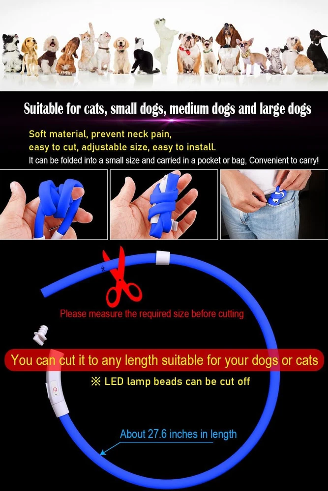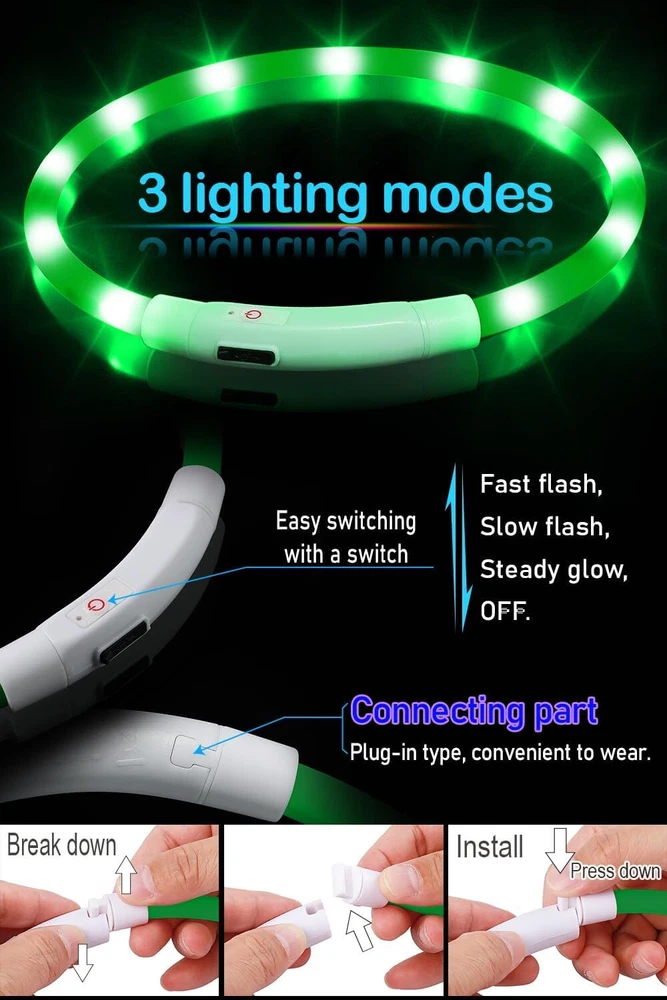 From the brand About ChunlongFour If you have any questions about our products, please tell us. We will do our best to let you have an happy shopping experience. Dog Collar and Dog Leash Product Description Features: waterproof, ultra-bright, soft, USB rechargeable, 3 flash modes, collapsible, adjustable, 360°visibility. *Due to lighting, monitor's brightness and contrast etc, the picture's color may be slightly different from the actual item's color.