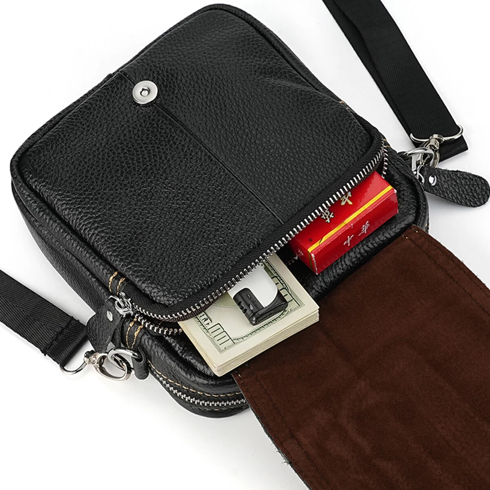 Feature: 1. Smooth zipper, thick hardware buckle, easy to open and close 2. Adjustable shoulder strap to adjust the length. Chest bag and shoulder strap are linked by a removable metal buckle for easy use 3. High quality real leather texture material, beautiful and durable Specification: Color: Black/Brown/Khaki Size: 7.7*8.5*6.5cm Using as: Sling bag, daypack, chest bag, cross-body bag, shoulder bag. Occasion: Perfect for outdoor sports (hiking, camping, climbing, running, cycling etc), school, shopping and so on. The bag can easily match any clothes, no matter formal or casual. Package Includes: 1 x Wallet