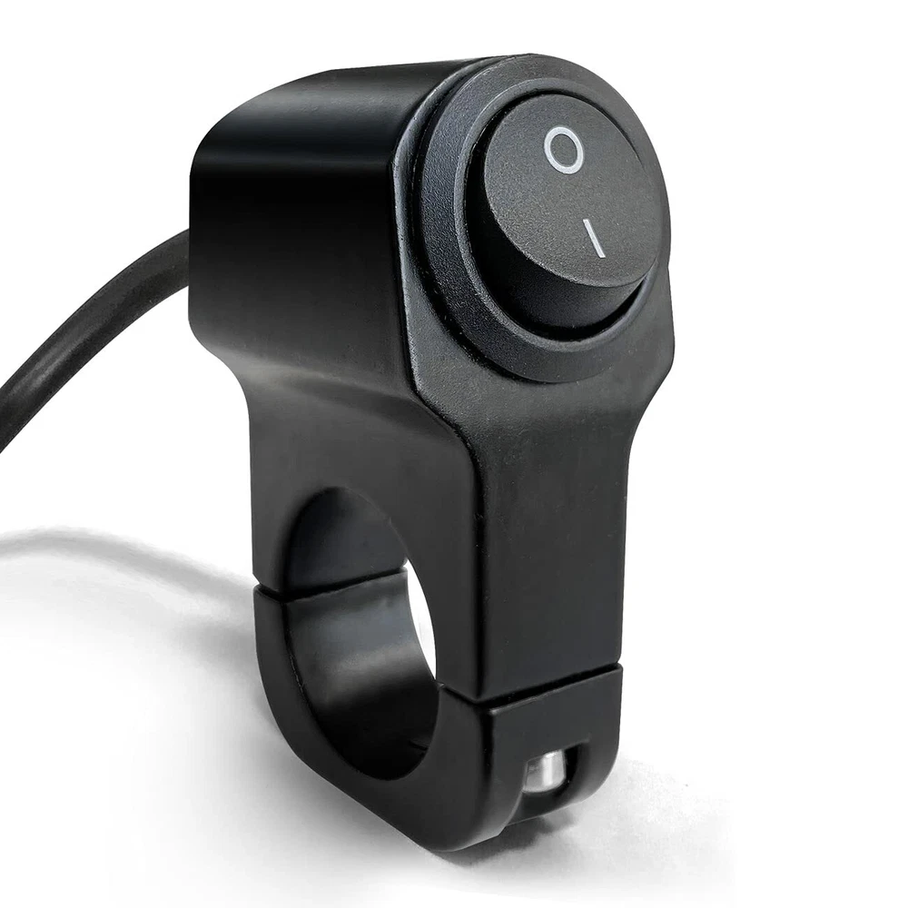 Application: Suitable for Motorcycle Motorbike ATV Sport Dirt Electric Bike Interrupteur Moto Function: ON OFF latching action, can be used for igeneral lights, hazard light, fog light, head light and power outlet for mobile devices A bout this item [Updated Waterproof] Works Great in Foggy or Rainy Day. 12V Universal switch, fits for handlebar in diameter: 22-23mm (7/8" inch), made of Thick Aluminium Alloy and Internal opper material This Handlebar Toggle ON/OFF Switch can be used ON 12V DC electrical system with spotlights, fog lights Wire Connection:Blue(connect to the equipment,positive). Black(positive) Output circuit protection, overload, reverse polarity and multiple protection, safety to use Widely Application: Fit on all 12V motorcycles, ATVS, UTVS, Bicycle, Dirt Bike, Scooters etc Specification: Standard rating: DC12V/10A Handle Bar Install Diameter: approx. 7/8" Size: 1inch x 2.3inch (Wide x Height) Cable Length: 20inches Color: Black Package include: 1 x Motorcycle switch with wire harness