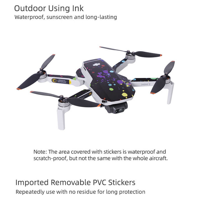 These decals are a game-changer for my Mavic Mini 2! The high-quality PVC material sticks perfectly without leaving residue, and the vibrant colors stay sharp even after outdoor use. Installation was a breeze—just align and smooth out any bubbles. Love how they protect my drone and controller while adding serious style. Highly recommend for anyone wanting to personalize their gear!
