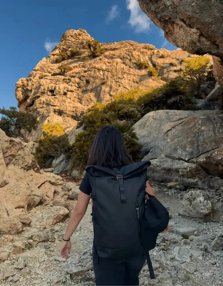 This backpack is a game-changer! The water-repellent material keeps my stuff dry, and the roll-top design adds extra security. Super comfortable for all-day wear, whether I'm commuting or hiking. The laptop sleeve fits my 15" laptop perfectly, and the luggage sleeve is a nice touch for travel. Love the sleek black look—stylish yet functional. Highly recommend for anyone who needs a reliable, versatile bag!