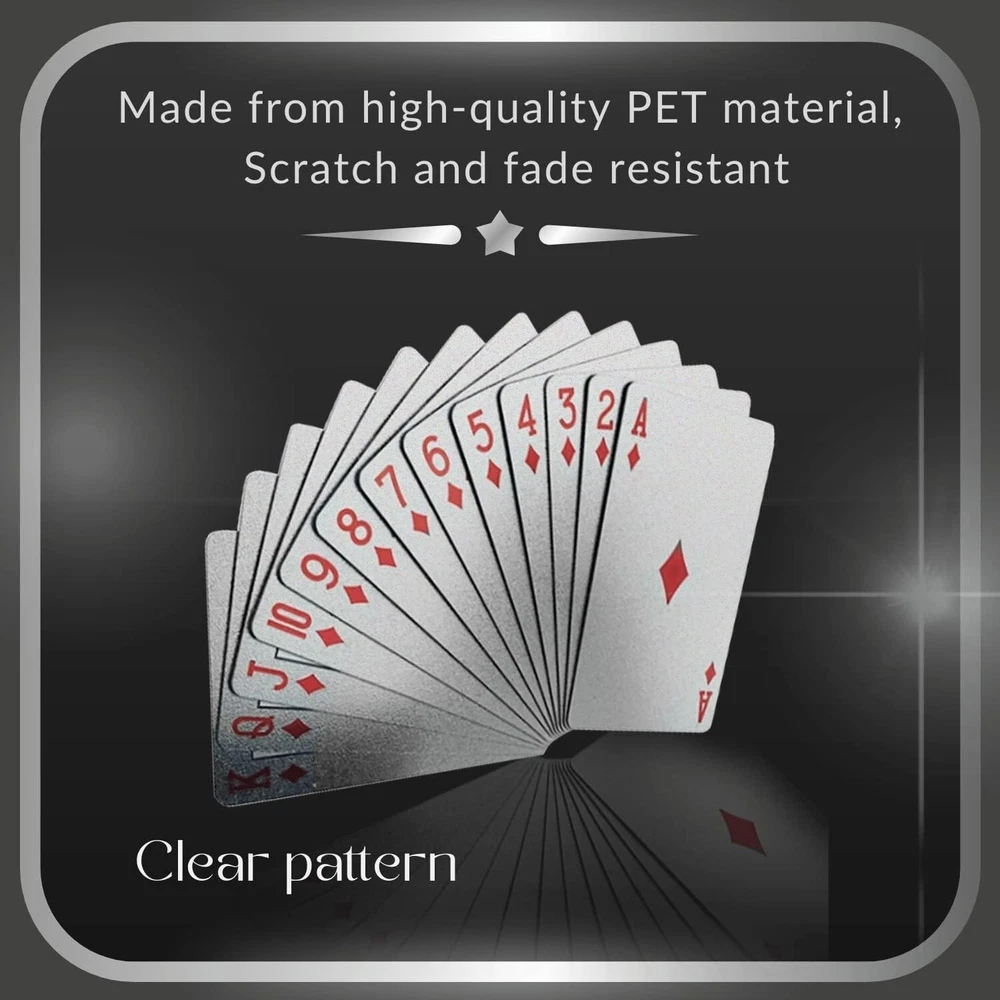 Waterproof Silver Foil Poker Cards, 1 Deck Plastic Playing Cards, Gift Set